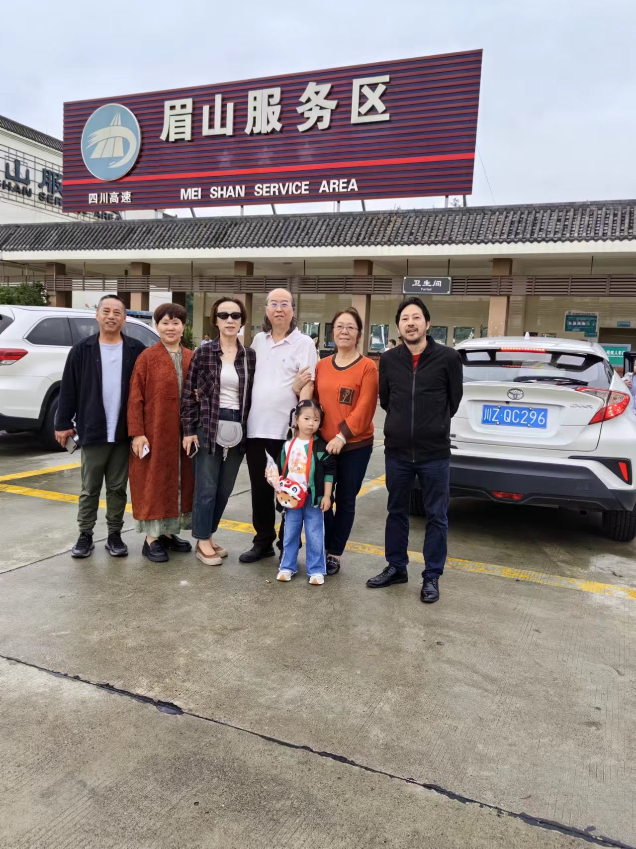 2024一9一28至10一6日在四川度假,游“中国帅乡”~乐至,“千年纸乡”~夹江,最后从中国最宜居城市~成都返回。南京一行邱,蒲,姚,周,杨,陈等,所见所闻,甚有裨益。在桑城乐至,群游陈毅故居,龙门报国寺,品锦绣小贝壳美食,夜间烧烤,为谢、陈证婚,偶搓川麻,时品陈酿。到夹江先访眉山三苏祠,继游东风堰,千佛岩,杨湾纸坊等,山水之胜,足消旅愁。人情之美,风情之善,令人流连忘返。“三美文化”~美酒、美食、美女,他处所无,蜀中独绝。成都尝麻辣串串,赏玉林夜景。高铁来回,过岭跨江,领略秋风,不免驰思遐想。遂以图片诗文记之焉! 附邱世鸿《国庆回川之行》 一,车过重庆 嘉陵江水沐斜晖, 峻嶺丛山掩翠微。 一别多年犹可忆, 巴山夜雨盼君归。