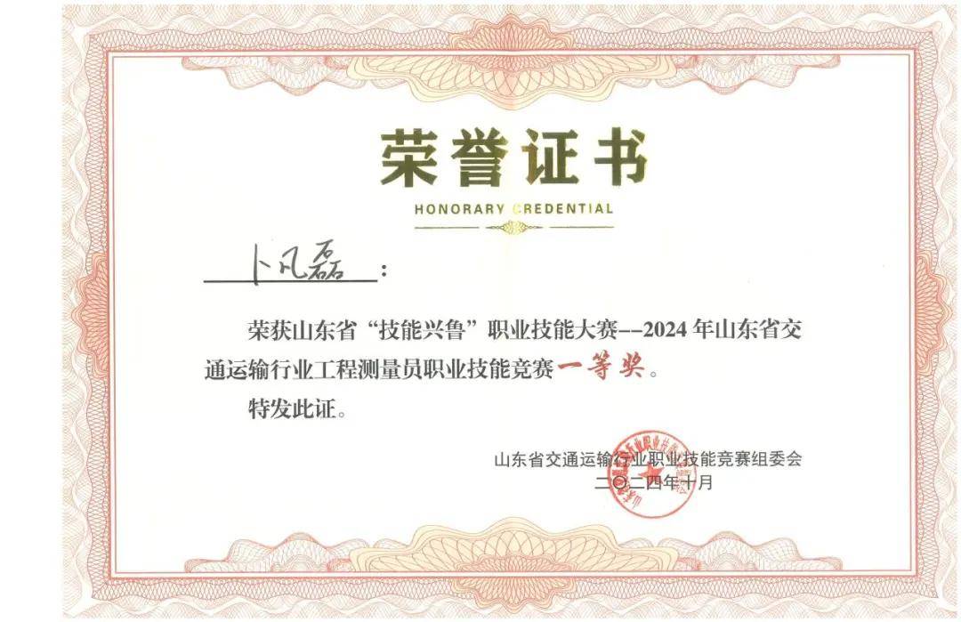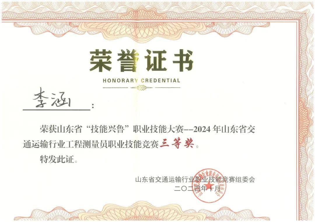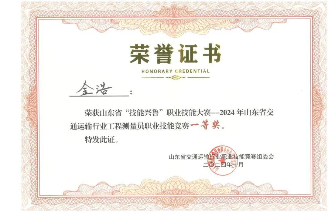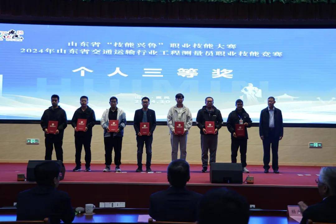 10月20日,山东省“技能兴鲁”职业技能大赛——2024年山东省交通运输行业工程测量员职业技能竞赛在滨州成功举办。山东交工建设集团荣获“团体一等奖”“一等奖选手培养单位”,同时,金浩、卜凡磊获个人一等奖,李涵获个人三等奖。