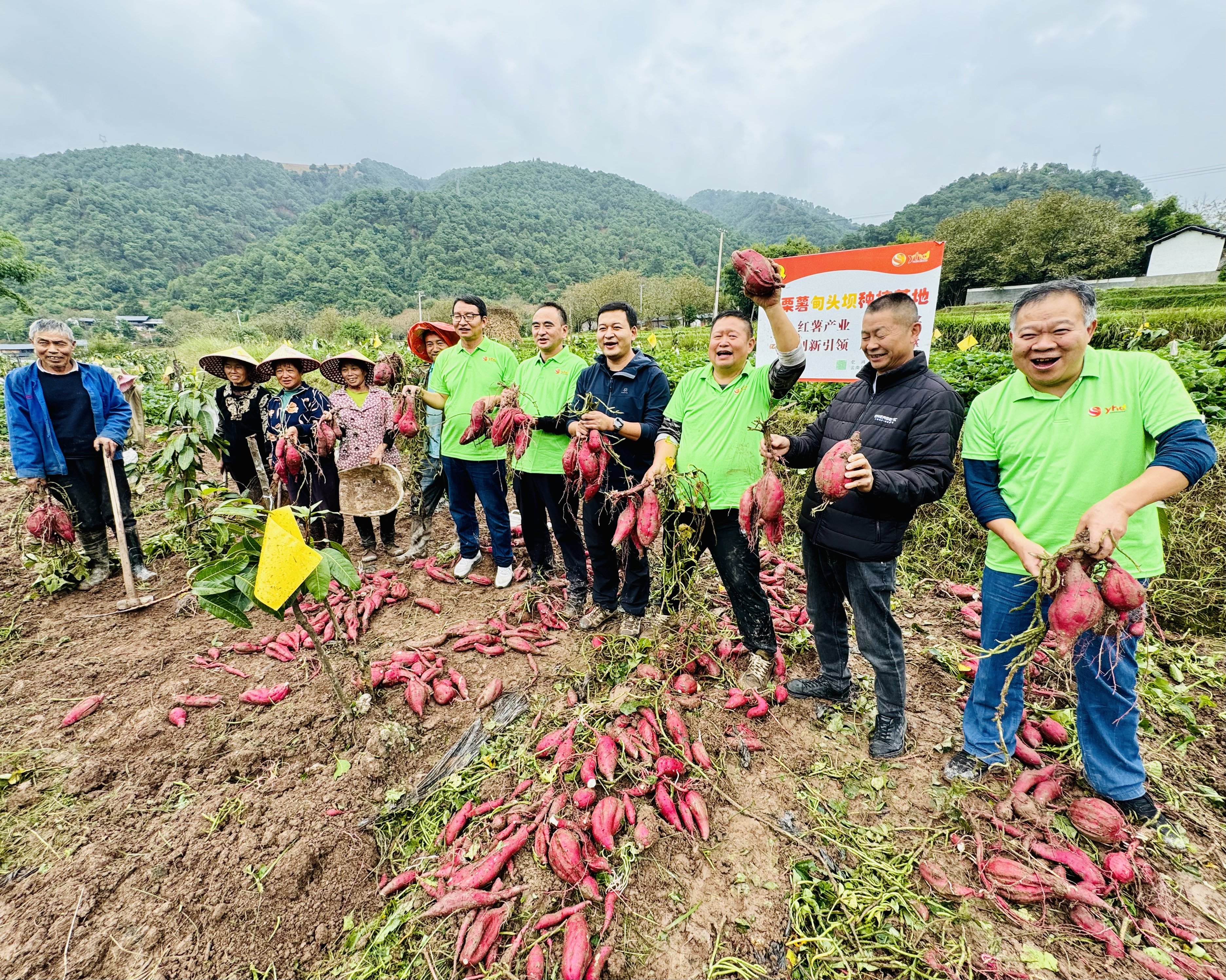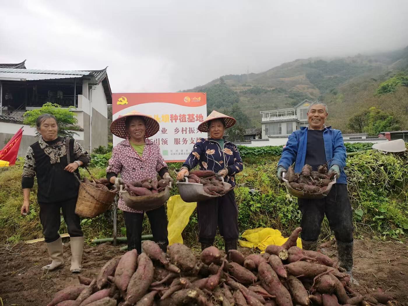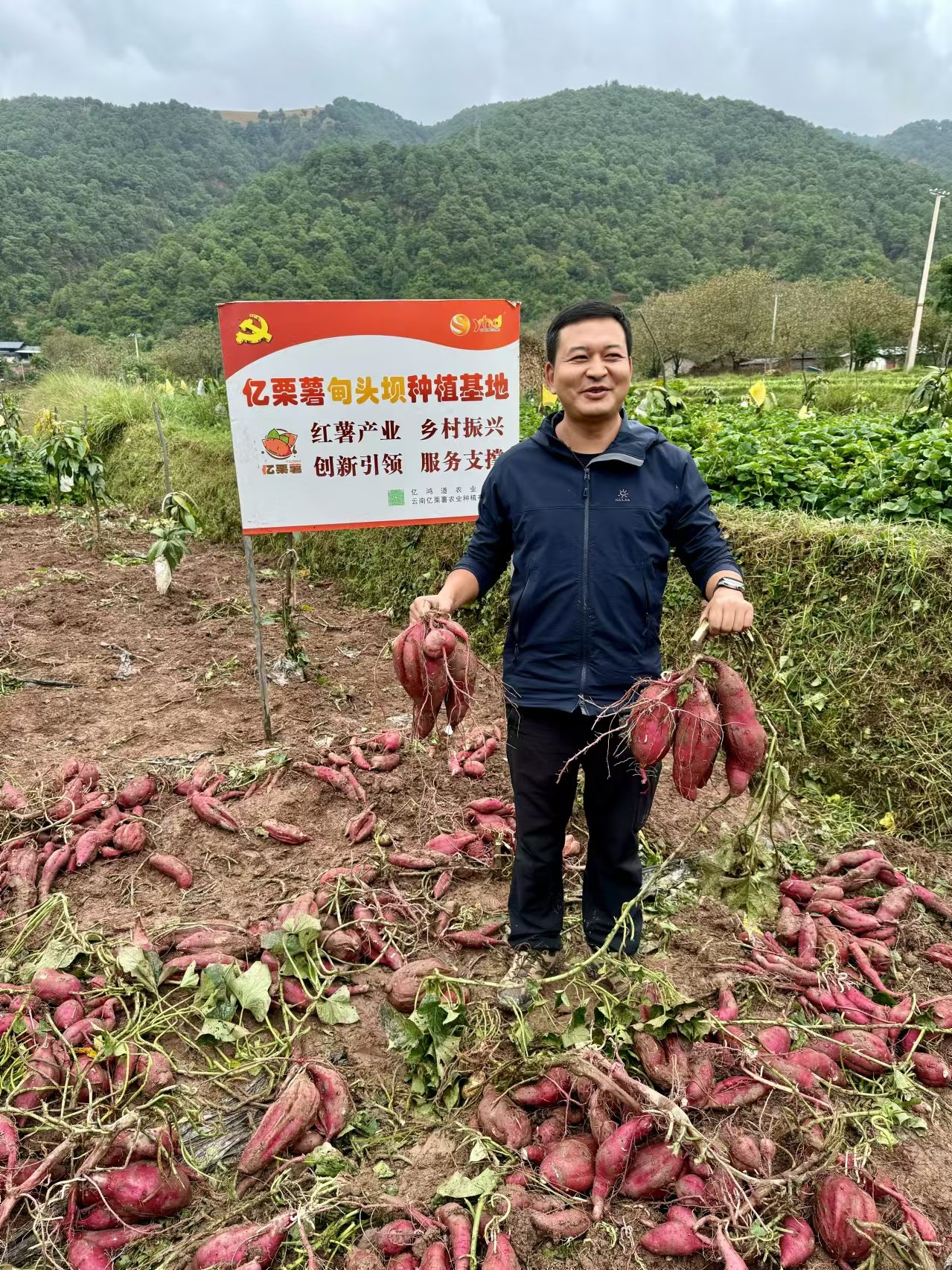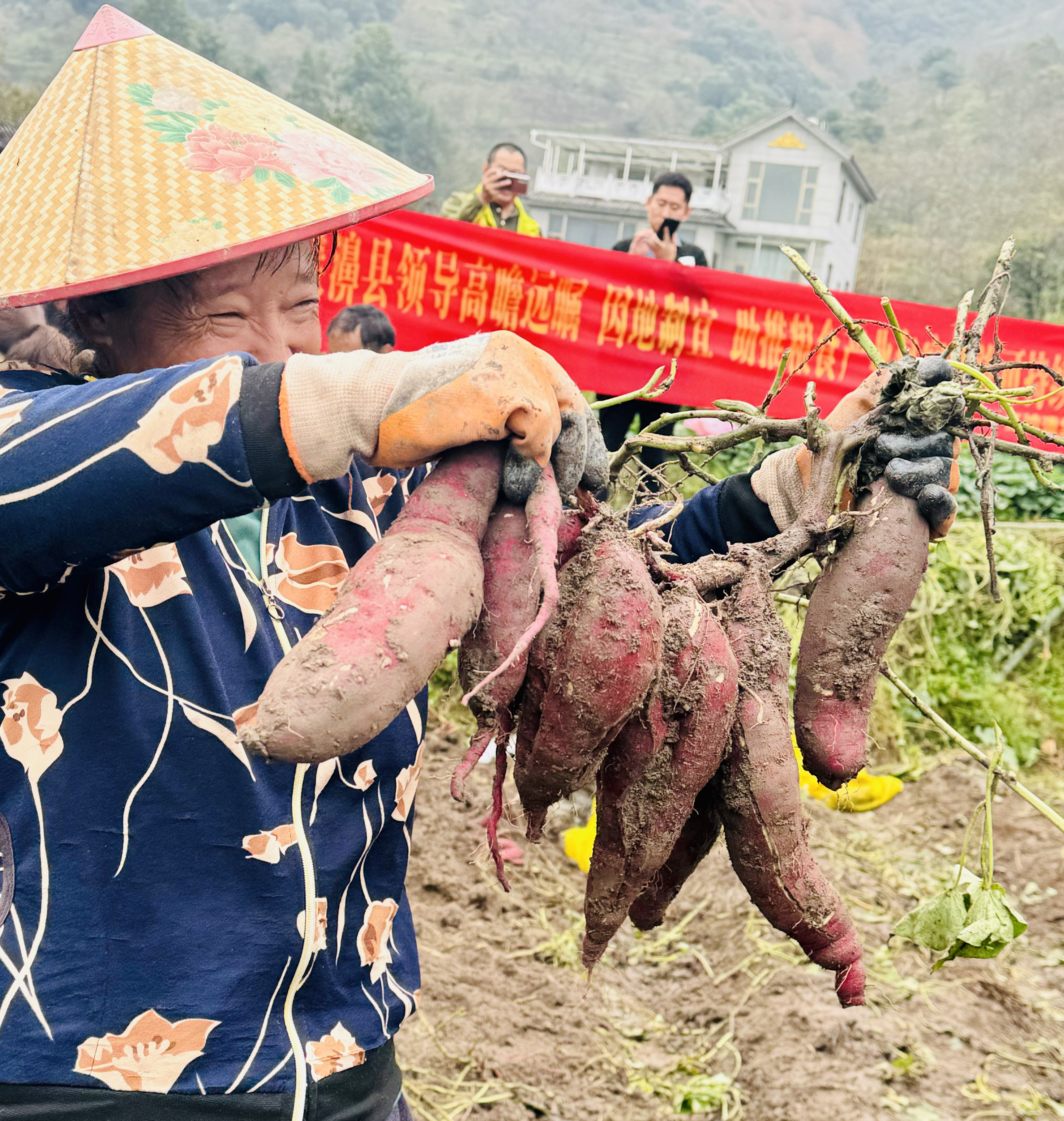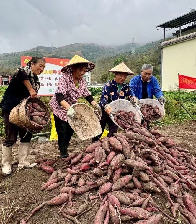 金秋时节,云南的田间地头长满了“幸福亿栗薯”, 薯农们穿梭在地里采摘果实,脸上洋溢着丰收的喜悦。