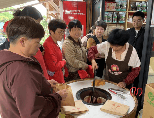 “你们真幸福,天天生活在这么美的风景中。” “你们才幸福,在这里玩玩,不用干活,我们还要为你们服务” “哈哈!”游客、村妇的笑声在晨雾中迷漫开来,都是幸福的笑。缙云素有制作烧饼传统,到缙云自然要尝尝。相传轩辕黄帝在仙 都鼎湖峰架炉炼丹,腹饥时就以山泉和面,揉成团贴于炼丹炉内壁,烤出来的饼色泽金黄、酥糯可口,香飘四野。当地百姓闻香而动,有心人仿效轩辕仙鼎制成陶鼎,专门用来烤制缙云烧饼,该工艺世代承传。缙云烧饼师傅始终严格遵循缙云古法工艺,精选当地的好水、好面、好肉为原料,成就了风味独特的缙云烧饼。目前,“缙云烧饼”已获国家地理标志证明商标、中国生态美食地标产品等荣誉,而这驰名中外的“缙云烧饼总部”就位于鼎湖村内。 每个烧饼店几乎都围满了游客,缙云烧饼,色泽金黄,表皮酥脆,咬一口,麦香、肉香、葱香、糖油香…喷香扑鼻;咸淡适宜,油而不腻,还有焦糖淡淡的甜味在口中。缙云烧饼配以小馄饨,是很多缙云人的早餐标配,简简单单,却能给予味蕾最畅快淋漓的享受。不少人还为了这对“灵魂CP”专门跑去景区来上一口,是吃了还想打包几份的美味。