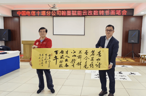郧阳区相关领导,十堰电信分公司负责人等参与了此次笔会。特别值得一提的是,应大客户要求,十堰电信分公司分管政企负责人拿着带有墨香的书画作品登门拜访电信大客户。这一贴心举动让大客户们倍感惊喜和温暖,他们纷纷表示,这种传统的书画形式犹如一条情感纽带,将用户与电信公司的关系维系得更加紧密。在这种浓厚的文化氛围和友好的互动中,许多原本棘手的业务洽谈变得顺畅起来,一个个大订单也顺利签订。