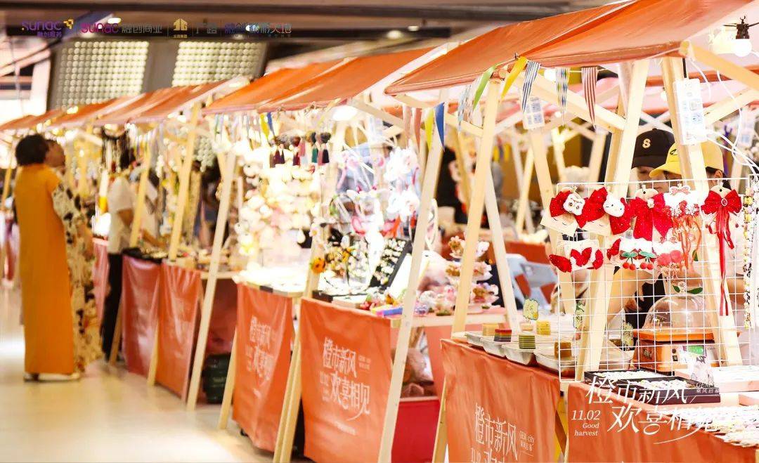 在这个充满烟火气的丰收时节,充满幸福感的丰收派对上欢声笑语不断。沿着丰收收获地图前行,一种玩法,贯穿活动主线,获取橙市印章,兑换新鲜蔬菜,感受满满的收获喜悦。 烟火菜场、亲子游艺区、音乐派对、市集区等活动点位皆可盖章。在烟火菜场中,各类蔬菜被标上蔬菜内卷文学的标签。后备箱市集更是热闹非凡,充满了生活的趣味与活力,处处洋溢着丰收的欢乐氛围,让人沉浸在这松弛的美好城市市集之中。