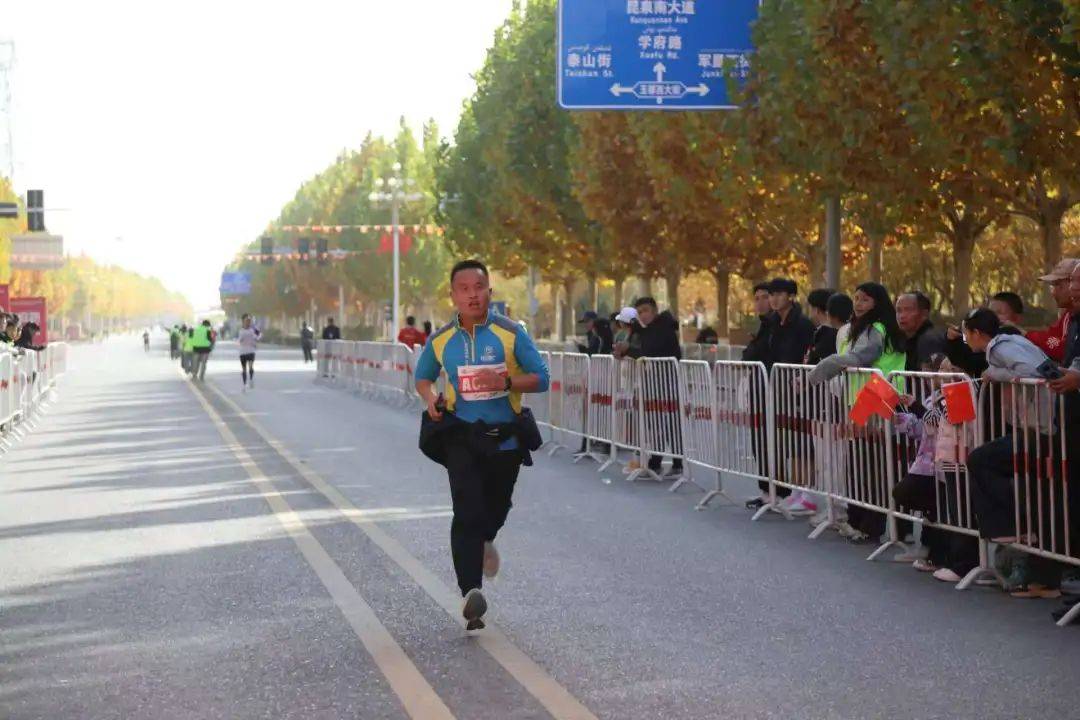 2024年11月3日10:30 第十四师昆玉市 半程马拉松 鸣枪起跑 一起来看看比赛的精彩瞬间吧 11月3日,第十四师昆玉市首届半程马拉松鸣枪起跑,一千余名跑步爱好者从时代广场出发,迎着秋日清晨的阳光穿越昆玉,绘制了一幅“人在景中人亦景”的全民健身动人画卷。 师市党委副书记、师长,市政府党组书记、市长买买提艾力·吐尔洪,师市领导李丹、颜俊、朱彤、贾爱民出席起跑仪式,共同为赛事鸣笛发令。 随着发令枪声响起,参赛选手争先恐后地出发,赛道两侧加油声、欢呼声绵延不绝,整座城市的运动热情被瞬间点燃。