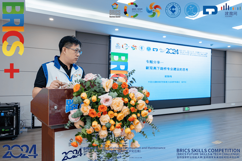 作为公路施工与养护数字化应用赛项的指导单位和中方协办单位。中国交通教育研究会会长刘卫民;中国交通教育研究会副会长、职教分会名誉理事长杨泽宇;中国交通教育研究会秘书长刘兰萍;中国交通教育研究职教分会副理事长、路桥专委员会主任张亚军;一带一路暨金砖国家技能发展国际联盟交通运输工作委员会副主任江定涛;中国交通教育研究会职教分会路桥专委会秘书长欧阳伟出席开幕式。