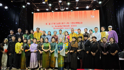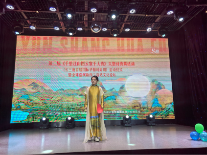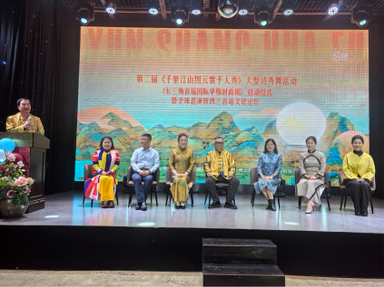 11月16日,第二届《千里江山图·云裳千人秀》大型诗秀舞活动启动仪式暨全球巡演新西兰首站高峰论坛活动成功举办,中国著名资深媒体人、中国名人会副主席、中国保健协会科普教育分会新闻顾问陈凤玲,长三角旗袍文化领袖人物、江苏旗袍会创会会长戴中礼,澳大利亚旗袍会秘书长王培红,桐乡磐十文化艺术创意有限公司董事长、濮绸面料科研中心主任戴金海,云裳华服创始人梁素云,董事长胡毅等嘉宾到场参会,李玉刚先生爱徒罗永甄主持活动。
