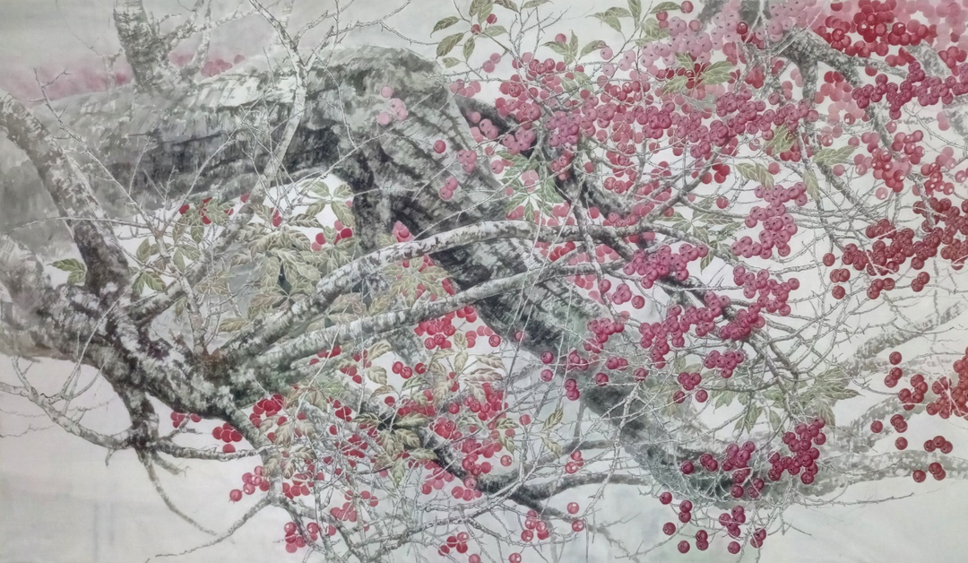 ![]() 《霜积秋山万树红》120×300cm 2020年