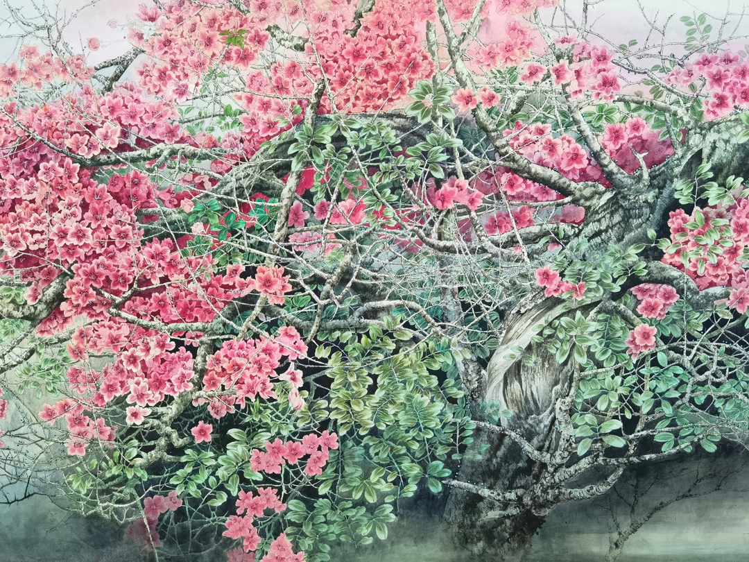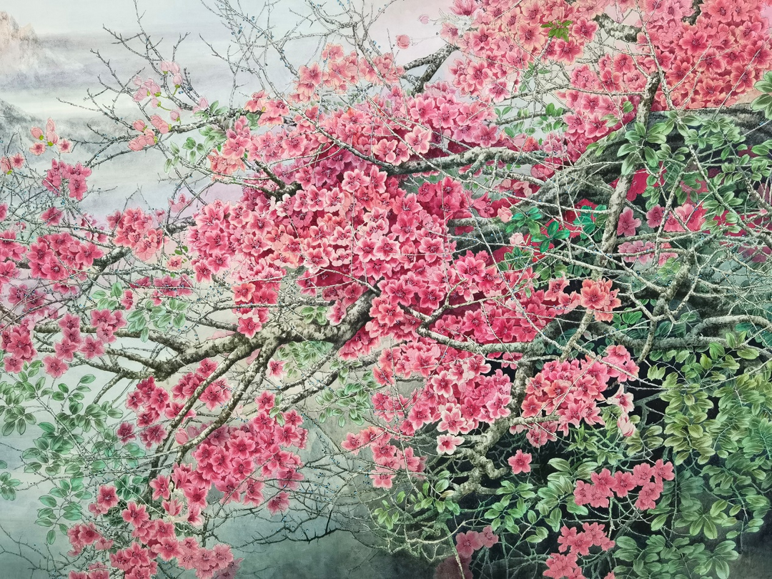 ![]() 《长白杜鹃红》(局部)180×450cm 2021年