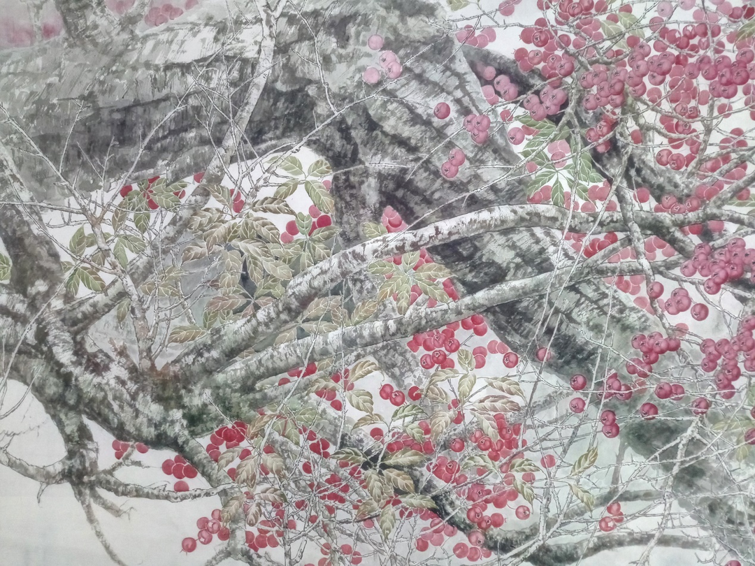 ![]() 《霜积秋山万树红》(局部)120×300cm 2020年 |