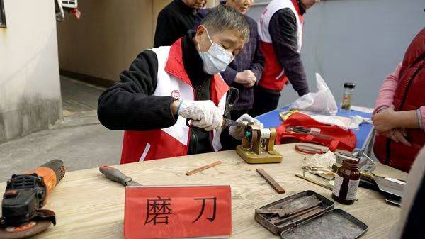 居民李女士在体验了理发、磨刀、量血压、测血糖等服务后,对志愿者热情且专业的服务称赞不已。她说道:“足不出户就享受到这么便捷的服务,项目丰富多样,都是日常生活中实实在在需要的。这让我们感受到了来自季卫桥社区和颐和公益的关怀与温暖,真的特别感动。”陈女士也向身边的社区干部表达了自己的感受。 来自宁波兴华口腔医院的李彩慧和李施彦是新成员,她们从 40 多公里外的宁波市区第一时间赶到余姚参与便民服务活动,令人深受触动。孙文毅则是一位参与多年公益活动的老志愿者,主要负责磨刀磨剪子。为更好地满足大家的需求,他一大早就来到了邮电新村的公益活动现场。“过来磨刀的居民可真多,虽说磨刀辛苦,但面对这么多亲切的居民,作为一名志愿者,能得到大家的认可就是我最大的动力。所以我很珍惜每一次为居民服务的机会,也希望自己能不断提升服务技能和质量,掌握更多服务项目,在公益之路上越走越远。”孙文毅向中心理事长齐国民说道。
