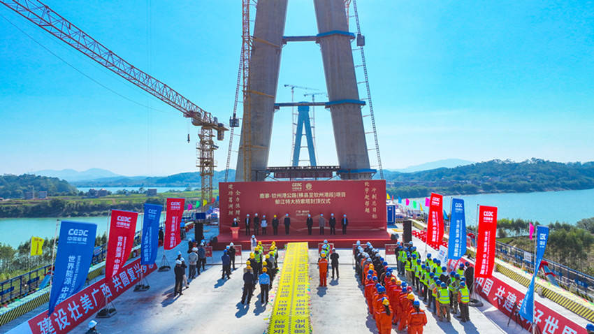 Óô½ÌØ´óÇÅÊǺáÇÕ¸ßËÙ¹«Â·µÄÖØÒª×é³É²¿·Ö£¬Î»ÓÚ¹ãÎ÷׳×å×ÔÖÎÇøºáÖÝÊкáÖÝÕòÓëÄÇÑôÕòÖ®¼ä£¬ºá¿çÓô½£¬ÊÇÒ»×ùÖ÷¿ç¶È580Ã×µÄË«Ëþ»ìºÏÁºÐ±ÀÇÅ¡£ÇÅÁº×ܳ¤2200Ã×£¬ÔÚÊÀ½çбÀÇſ羶ÅÅÃûÖÐλÁеÚ79λ¡£´Ë´Î·â¶¥µÄ±±°¶Ö÷Ëþ¸ß169Ã×£¬ËþÖù·ÖΪ29½Ú£¬½ØÃæ³Ê“ÕýÁù±ßÐΔ½á¹¹£¬½½Öþ·½Á¿´ï160Á¢·½Ãס£ ×Ô2023Äê3ÔÂ18ÈÕ×®»ùÊ©¹¤Æô¶¯ÒÔÀ´£¬ÏîÄ¿ÍŶӿ˷þÁ˸´ÔӵĵØÖÊÌõ¼þ¡¢Èܶ´ÈºµÈÖØÖØÀ§ÄÑ£¬Àúʱ622Ì죬ԲÂúÍê³ÉÁËÖ÷ËþµÄ·â¶¥ÈÎÎñ¡£ºáÇÕ¸ßËÙ¹«Â·×ܳаüÏîÄ¿²¿µ³Ö§²¿Êé¼ÇÁõȨºñ±íʾ£¬ÕâÒ»³É¾ÍÀë²»¿ªÈ«Ì彨ÉèÕßÒ¹ÒÔ¼ÌÈÕµÄÐÁÇÚ¸¶³öºÍÎÞ˽·îÏס£
