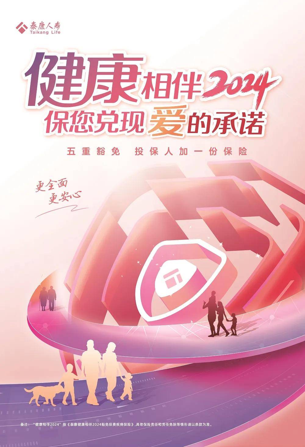 +豁免:健康相伴2024豁免险的加入,为客户提供了更加人性化的保障。这款豁免险覆盖了投保人轻症、中症、重疾、高残、身故五大豁免情形,一旦投保人遭遇不幸,被豁免合同的后续保费将自动豁免,被豁免合同继续有效,确保被豁免合同被保人的保障不受影响。这一设计为客户解除一定后顾之忧,体现了泰康人寿对客户的人性化关怀。 健康相伴2024特点显著:投保年龄(被豁免保险合同投保人年龄)广泛,为18周岁(含)至75周岁(含);交费期间灵活,从1年至29年;豁免情形广泛:豁免覆盖五大风险场景,为客户提供全方位保障;彰显福利特性,以较低的成本助投保人“减负”。 +医疗:健康心享2024医疗险的引入,则为客户提供了高品质的医疗保障。这款深受客户推崇的医疗险具有五大优势:五大津贴责任、康复医疗保障、院外药品费用保障、低起付高保额以及双轨制医疗网络。在医疗费用日益增长的老龄化社会,这些优势无疑为客户提供了更加坚实的健康后盾。 为守护客户全生命周期,“健康心享2024”不仅限于为客户带来医疗费用保障,更为客户提供健康咨询、健康促进、疾病预防及就医服务等健康服务,让客户健康有人管、就医有协助、理赔更便捷。