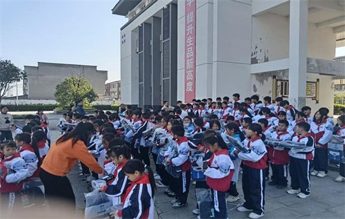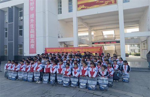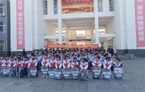 捐赠仪式由我校张乃奇校长主持。张校长致欢迎辞并向金欧等人介绍了学校的基本情况,然后鼓励学生们要认真学习,争取考上大学,为祖国的发展与腾飞拾瓦添材。苏州舜禹机电科技有限公司和视创会展科技(上海)有限公司领导分别向每位学生赠送了书包和文具盒。拿到赠品,学生们的脸上露出了开心的笑容。这次活动旨在帮助农村地区的留守儿童,给他们送来关爱和温暖。最后,参与活动的所有人员合影留念。