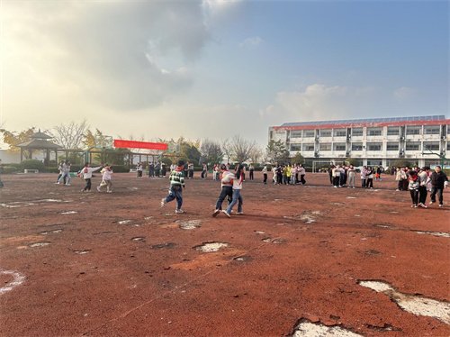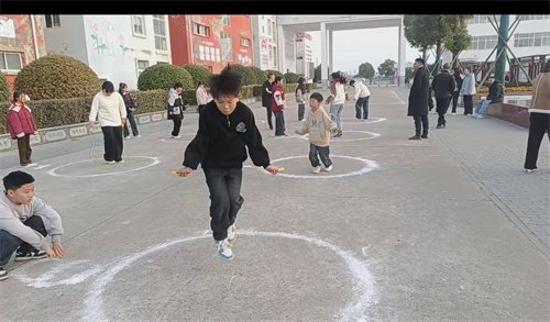 “鱼跃龙门”接力跳比赛是本次艺体节的一大亮点。需要10 人从悠绳A者左手排队,依次进入绳中,然后从甩绳B者左手快速通过,10人全跳完一遍后,重复进行。这项比赛不仅考验了孩子们的跳跃能力,更激发了他们的协调性。