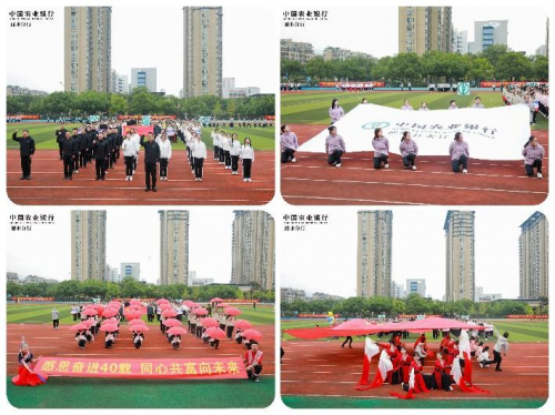为深入推进丽农家园建设,进一步提振全市农行广大干部员工的向心力、凝聚力。近日,“同心庆华诞 运动展风采”全市农行第六届职工趣味运动会在丽水体育中心顺利举行,来自各一级支行、市分行本级的12支代表队共600余人参加。 伴随着激昂的运动员进行曲,运动会开幕式正式开始。国旗护卫队、各代表队依次入场,他们步伐矫健、斗志昂扬,以响亮的口号、整齐的动作、独特的创意充分展示了团队精神和集体风采。