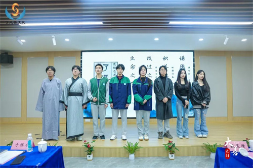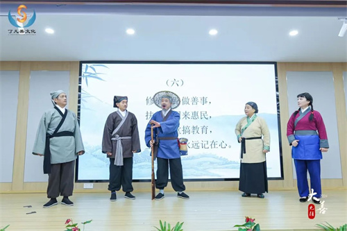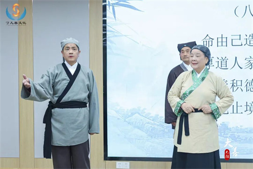 了凡文化示范学校——汾湖职高的同学给大家带来了舞台剧“三话袁了凡”,为本次活动助兴。(三话分别指:普通话、英语和芦墟方言,此舞台剧在吴江区的“三话”比赛中荣获特等奖)。