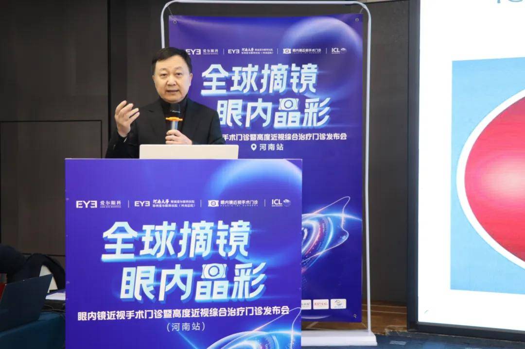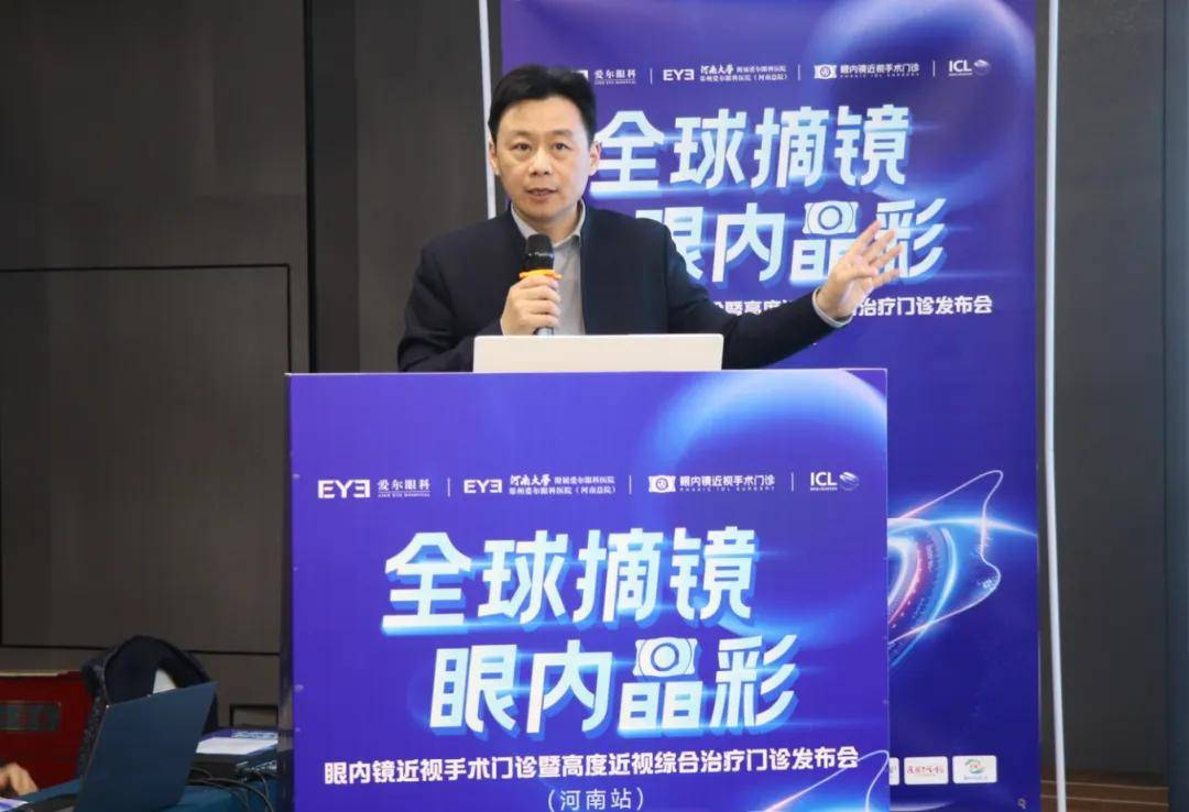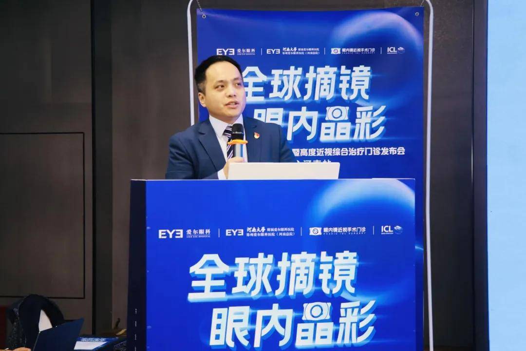 河南大学附属爱尔眼科医院党支部书记、郑开区CEO瞿章俊致辞 发布会上,爱尔眼科河南省区副总院长、河南大学附属爱尔眼科医院院长李玉军教授介绍道:“近年来,随着屈光技术的进步与发展,越来越多的人选择通过近视手术来摆脱眼镜束缚,特别是ICL晶体植入手术,成为了许多近视朋友的‘不二选择’,医院成立“眼内镜近视手术门诊”、“高度近视综合治疗门诊”将选择ICL晶体植入术式人群、高度近视人群进行分流,更精准地为这类近视朋友的术前检查量身定制专属流程,节约检查时间,从而提升患者就诊体验感;此外,门诊将充分利用爱尔眼科集团的强大资源,汇集全球的专家智慧、配备专业医-护-技团队,为患者的手术安全保驾护航。”