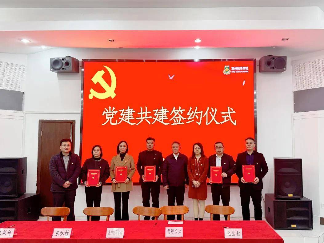 12月19日下午,苏州枫华学校党支部与汾湖高新区元荡村党委、汾湖高新区东联村党委、汾湖高新区东秋村党委、星舰工业,在苏州枫华学校报告厅联合签署多方党建共建合作协议。
