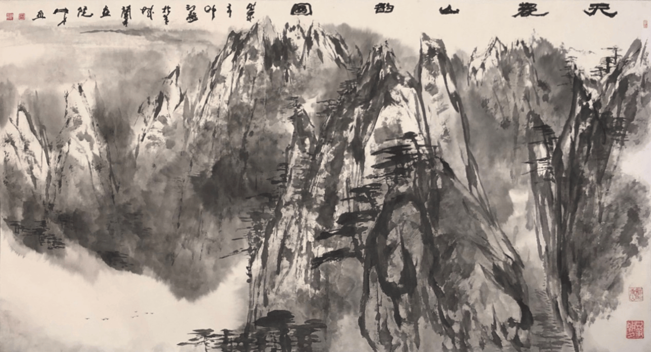 《天都峰山韵》中国画 150cm×328cm 林立中作