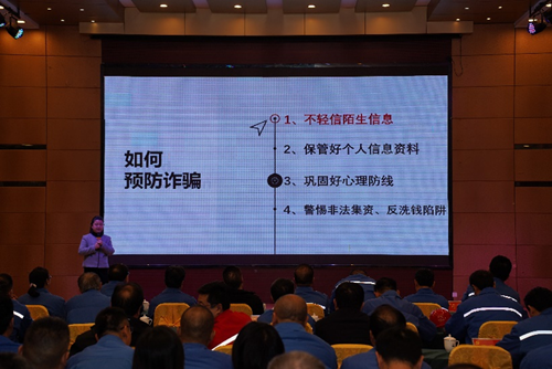 临近年底,我们不仅要享受团聚的喜悦,还需要提高警惕,保护好自己和家人的财产安全,合理规划家庭财务。天脊集团财务部资金中心苏娟从家庭预防诈骗和稳健理财两个方面为大家进行讲解,提醒大家守好钱袋子,安全迎新年。