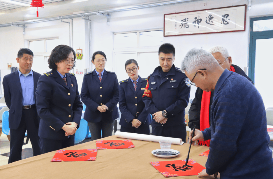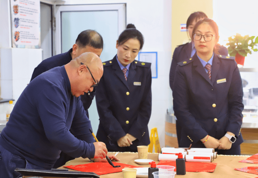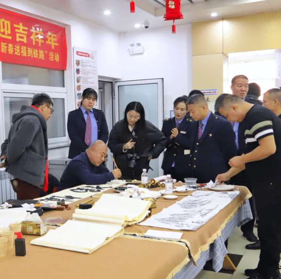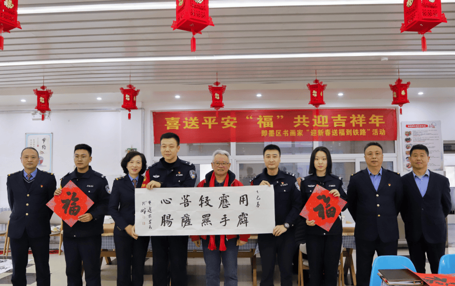 2025年元旦到来之际,为让日夜奋战在一线的铁路职工过一个祥和的元旦佳节,12月24日上午,青岛市即墨区知名书画家马斗进、王仕伟、徐小杰、盛祥斌一行四人来到国铁济南局青岛房建公寓段蓝村西行车公寓,为在此休息的乘务员和铁路民警们送上新年祝福。