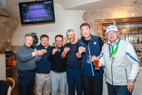 PART 2晚宴时光:品悠山酱酒,叙邻里情谊 比赛结束后,东莞观澜湖酒店大堂外的烧烤自助餐晚宴成为赛事的点睛之笔。温暖的灯光下,悠山酱酒成为席间的明星,无论是搭配烧烤美食,还是用于祝酒致辞,都彰显出品牌特有的优雅与醇厚。