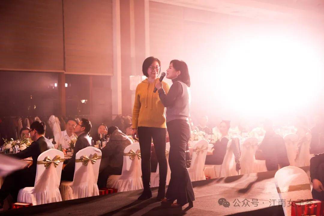 (右:江南女子荟创始人李娜 左:声悦江南俱乐部王建亮院长) 手挽手,心连心相聚于湖滨四季春酒店一楼龙凤集宴会厅,共同见证「同心同行·筑梦未来」年会盛宴。