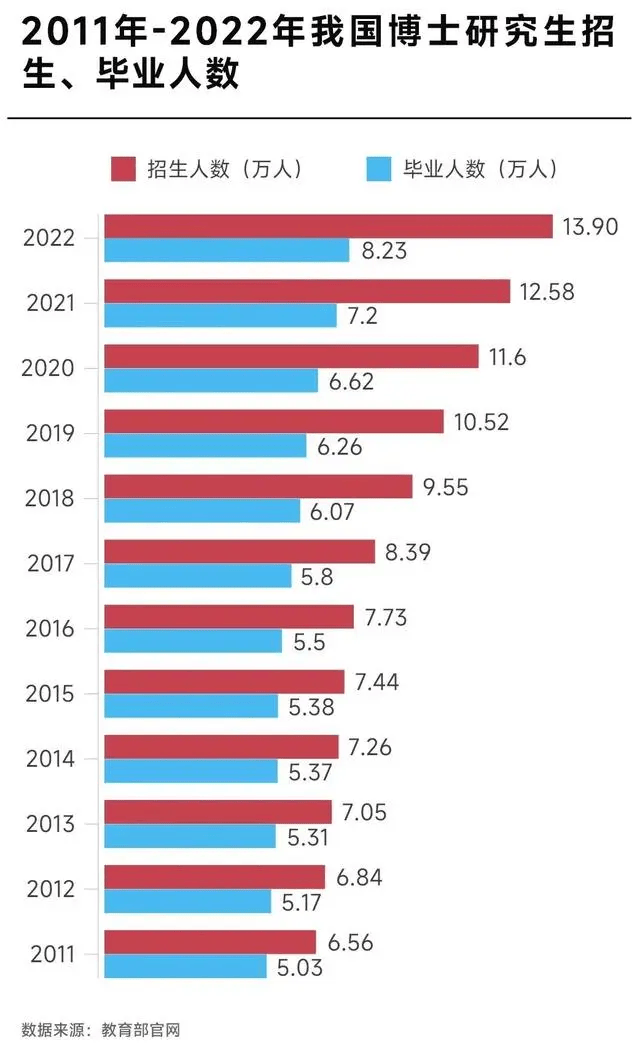 在国内,读博是对自己的学历进行“洗牌”的最好机会。2022年的数据显示,全国累计获得博士学位的人数约为110万,跟14亿的人口基数一比,相当于10000个人中只有不到8个人是博士,和发达国家比依然有上十倍的差距! 由此可见,博士是非常稀缺的资源,并不是随随便便可以“水”出来的,它是高等教育体系中的最高层次!未来很长时间里,我国社会各方面的资源都会向拥有博士学位的人群倾斜,所以越早下定决心读博就越明智!