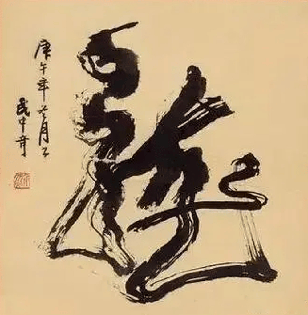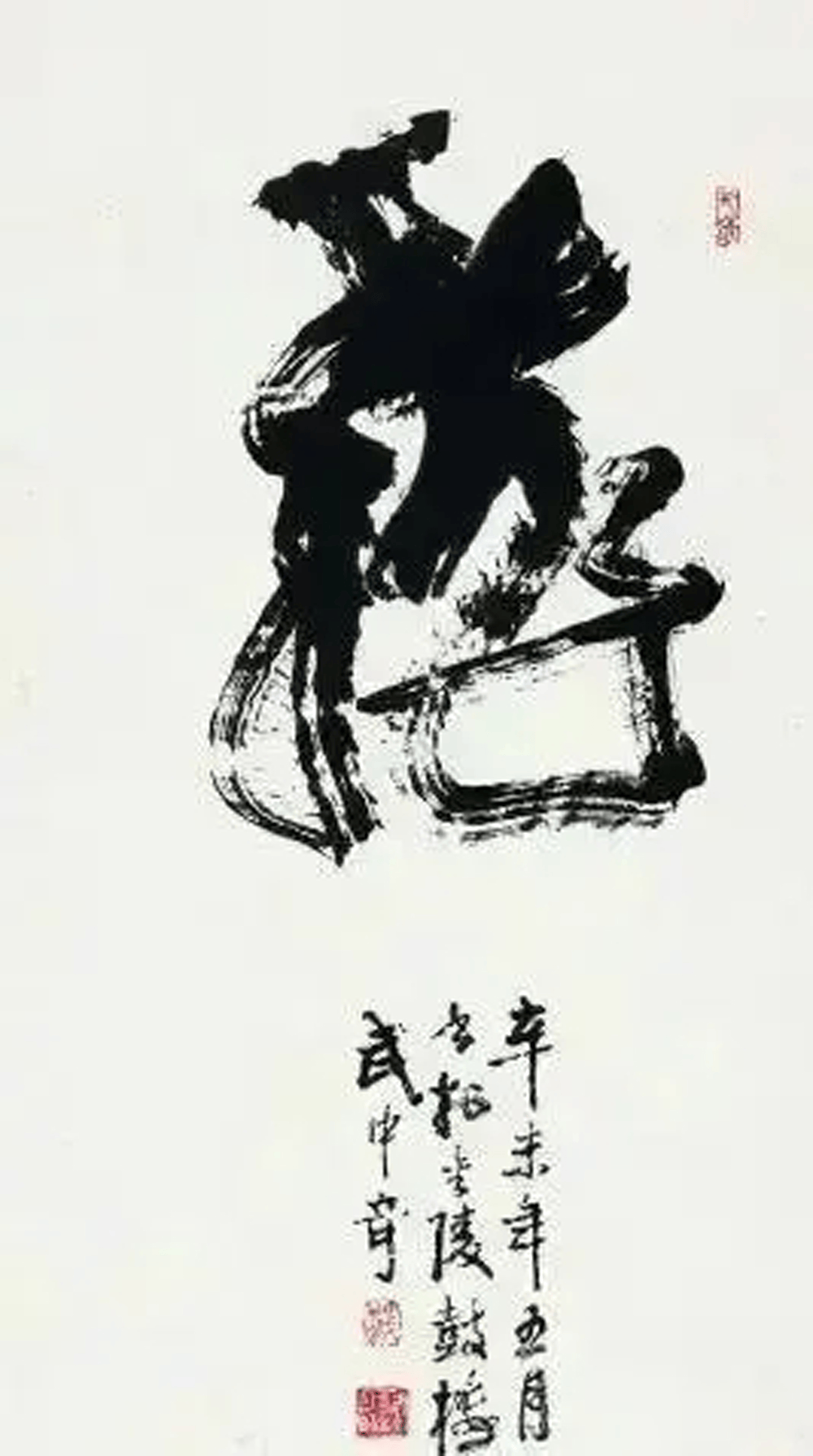 沙孟海有三种不同的版本,都是用了粗犷的笔法,用了很大的笔墨。