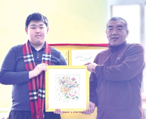 值得一提的是,现就读于加拿大皇家艺术中学十一年级的刘宇洋同学向生肖集邮研究会捐赠了邮票绘画作品《蛇年大吉 中加友好》。在这幅作品中,刘宇洋同学巧妙地将富有装饰感的生肖蛇造型、牡丹花、钱币图案与象征加拿大的枫叶等元素相融合,通过明丽的色彩、细腻的笔触和独特的构图,传递出美好期许与祝愿。为了表彰刘宇洋同学的心意和贡献,生肖集邮研究会特聘请他担任“生肖集邮文化宣传小大使”,并颁发聘书。这一举措不仅是对刘宇洋同学个人艺术才华的高度认可。