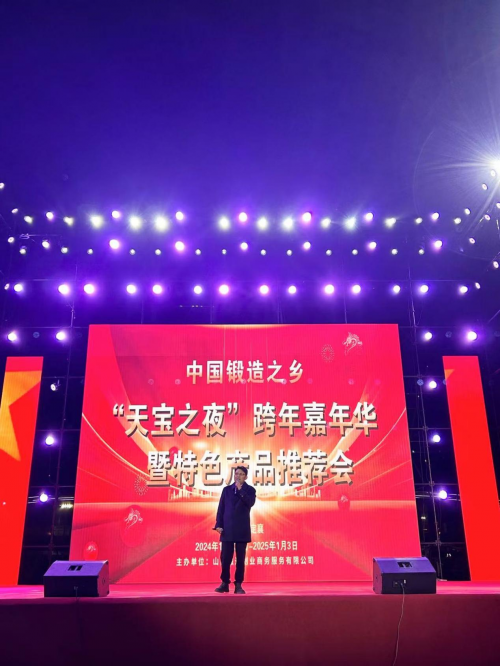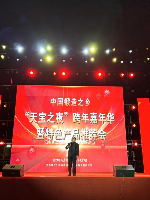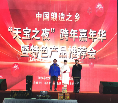 山西忻州1月1日电 “大美定襄欢迎您,快来定襄过大年。”由山西融通创业商务服务有限公司主办,山西天宝集团冠名,2024年12月31日晚间的山西省忻州市定襄县金鼎广场上,灯光璀璨,舞台炫丽。由山西融通创业商务服务有限公司主办、山西天宝集团冠名的“跨年歌会”——“法兰之夜跨年嘉年华暨特色产品推介会”在此高潮迭起,引发阵阵欢呼。