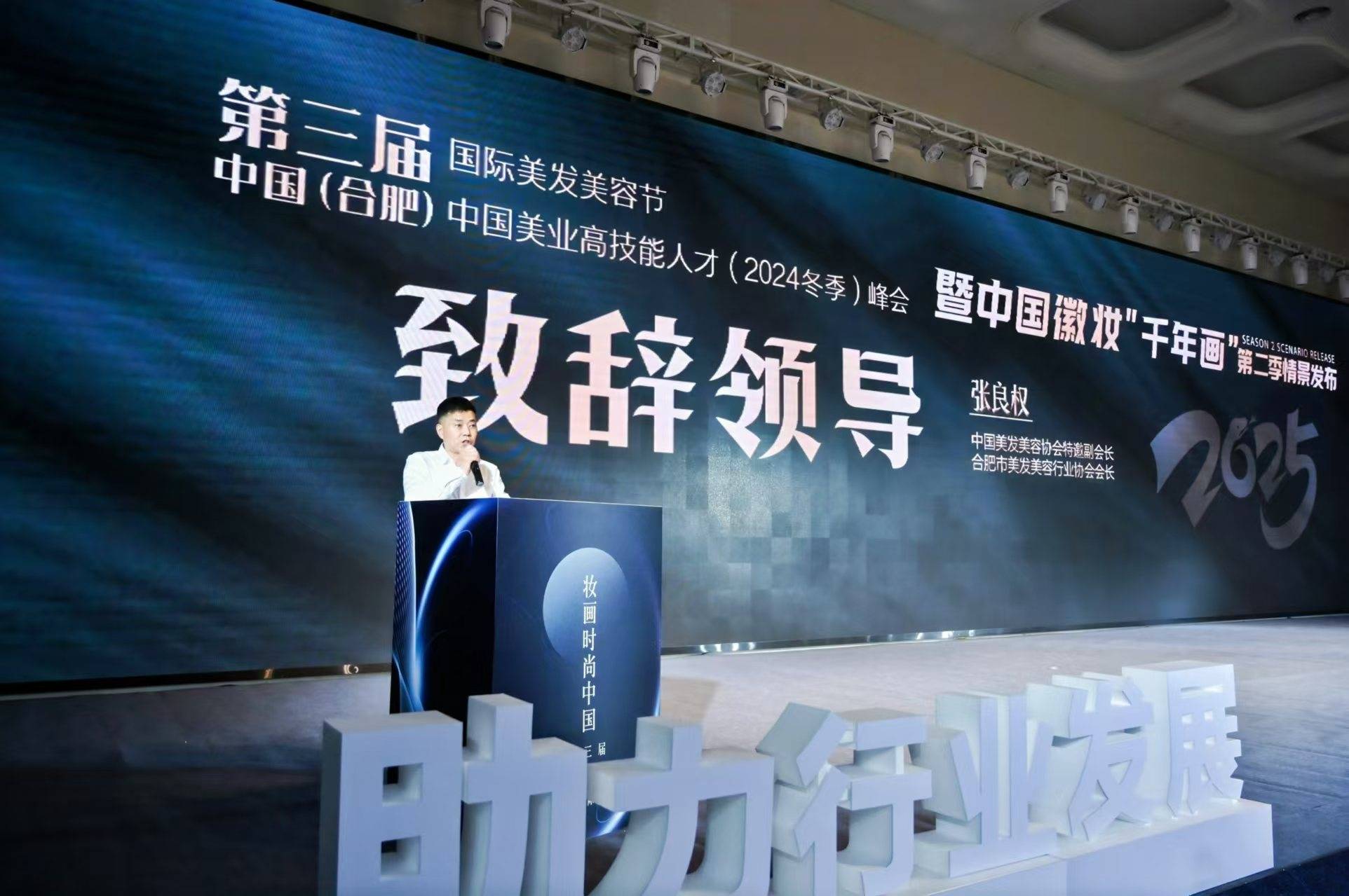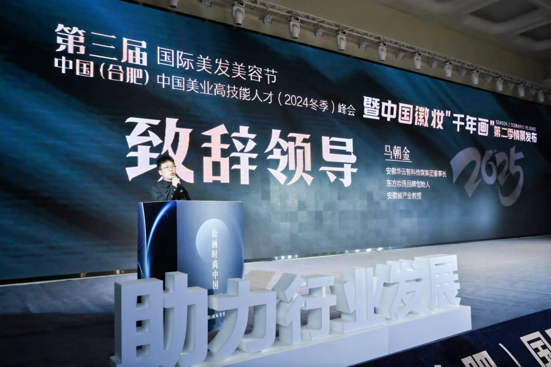 12月27日,第三届中国(合肥)国际美发美容节暨中国徽妆“千年画”(第二季)情景发布、“妆画大师杯”全国美业技能(2024合肥站)锦标赛系列活动在白金汉爵大酒店举行。合肥市民政局柴先利副局长、合肥市商务局商贸处郑国栋主任相关领导出席开幕式,中国美发美容协会特邀副会长、合肥市美发美容行业协会会长张良权,安徽省产业教授、安徽华云智科传媒集团有限公司马朝金董事长分别致开幕辞。