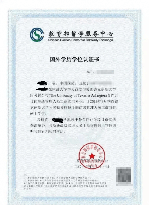 修满学分且成绩合格后,颁发美国德克萨斯大学阿灵顿分校(UTA)EMBA硕士学位证书。该证书可在中国教育部留学服务中心获得认证。