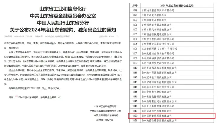 近日,山东省工业和信息化厅发布《关于公布2024年度山东省瞪羚、独角兽企业的通知》,日照交通能源发展集团旗下蓝能科技公司顺利通过2024年度山东省瞪羚企业认定。 ![]()