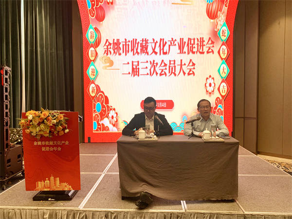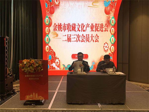 今日,余姚市收藏文化产业促进会二届三次会员大会在泗门瑞盛国际俱乐部酒店盛大启幕,来自各地的收藏界精英齐聚一堂,共同见证了这场文化与艺术的盛宴。 大会在主持人以热情洋溢的开场致辞中拉开帷幕,为大会奠定了欢快的基调。紧接着,会长郑登桥发表了激情澎湃的致辞,他回顾了过去一年余姚市收藏文化产业促进会取得的辉煌成就,并对未来的发展寄予了厚望。