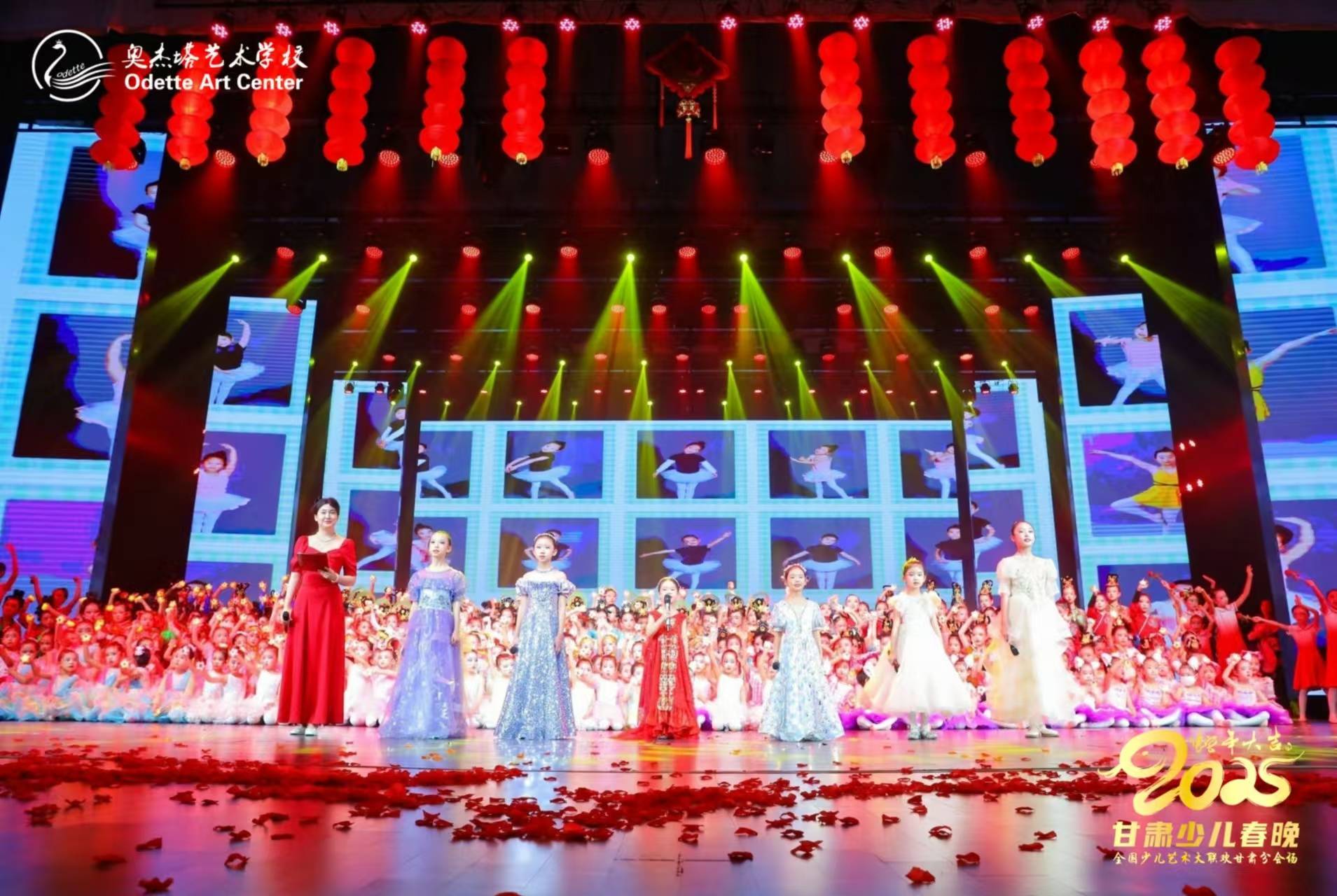 2025年1月11日,甘肃省少儿春晚《送你一朵小红花》奥杰塔专场,在兰州文理学院大剧院录制举办,本次晚会共做了上下两场,奥杰塔参与的小演员近千人,每场晚会分别有开场结尾和4个篇章组成。开场和结尾奥杰塔的小朋友和老师们以庆祝2025送你一朵小红花舞蹈形式祝福全国全省人民新年快乐!