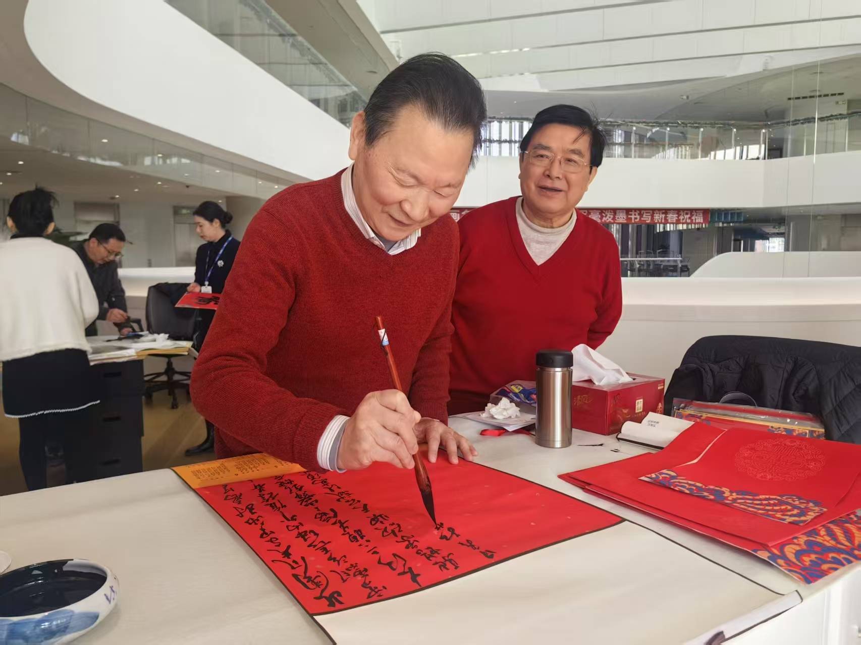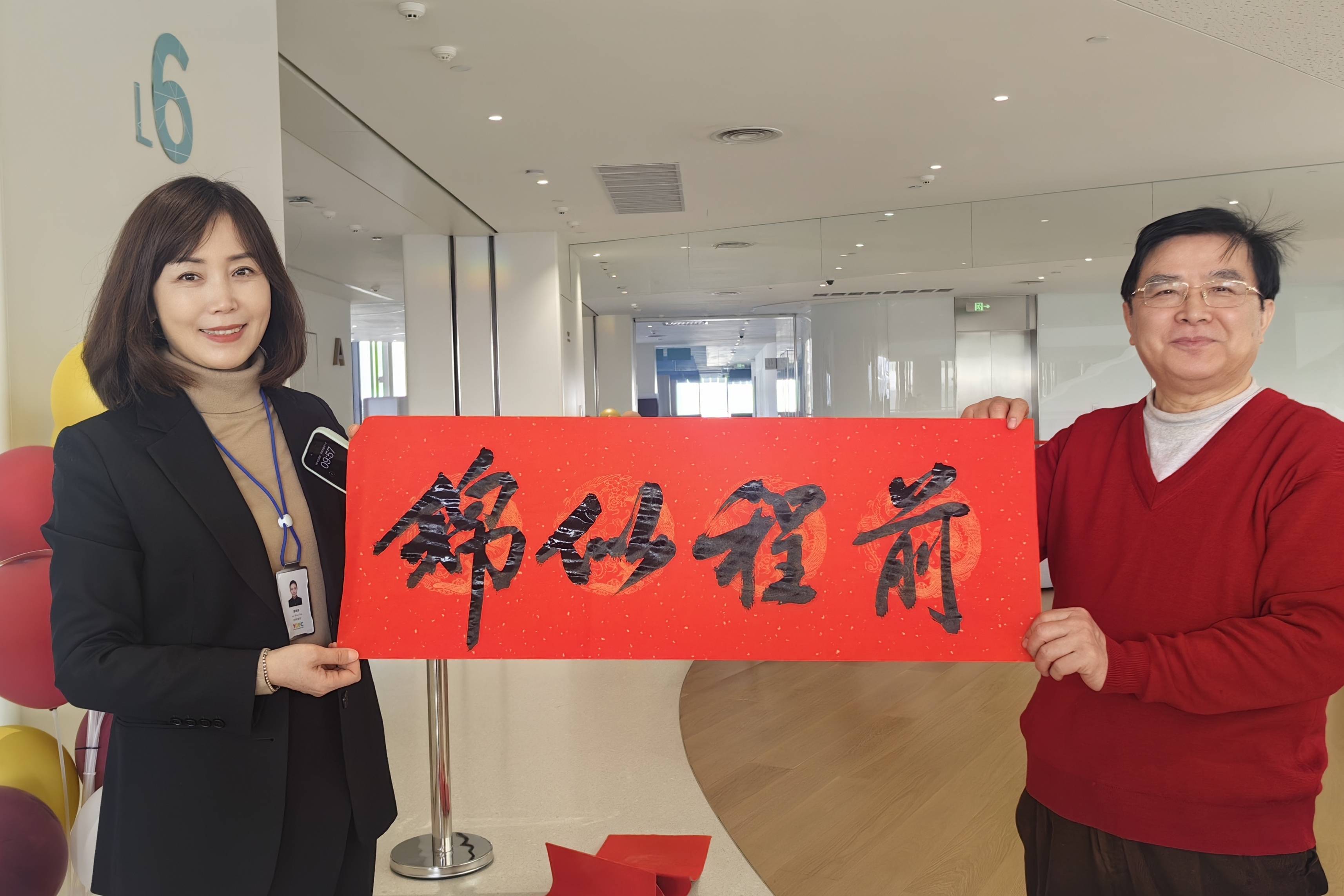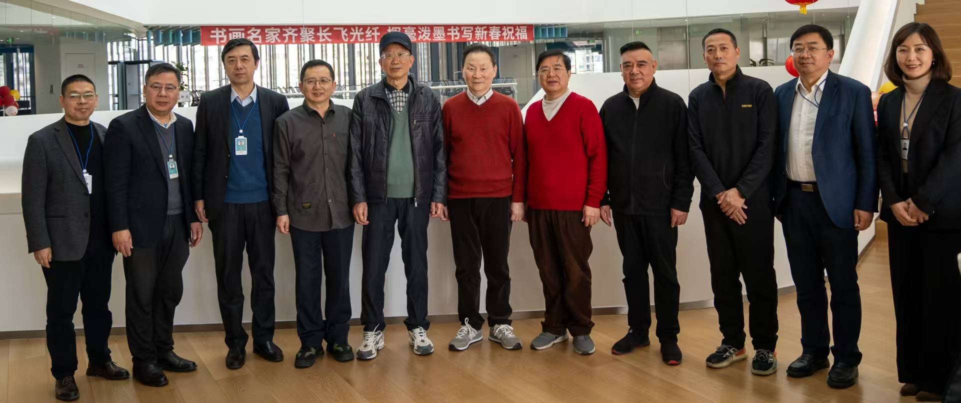 2025 年 1 月 16 日,在武汉长飞光纤股份有限公司内,一场充满文化韵味与新春祝福的活动在这里举行。省市书画名家湖北省原副省长、省国际文化交流协会会长赵斌,武汉市原政协主席、武汉市原书协名誉主席叶金生,国家一级美术师、湖北天翼书法家协会主席林幼槐,湖北省硬笔书法家协会副主席、省墨香荆楚书画院副院长陈艾,武汉理工大学艺术与设计学院院长、省国画院副院长徐进波,省书法考级中心主任李海峰等齐聚一堂,为长飞光纤的员工们写春联、送祝福。