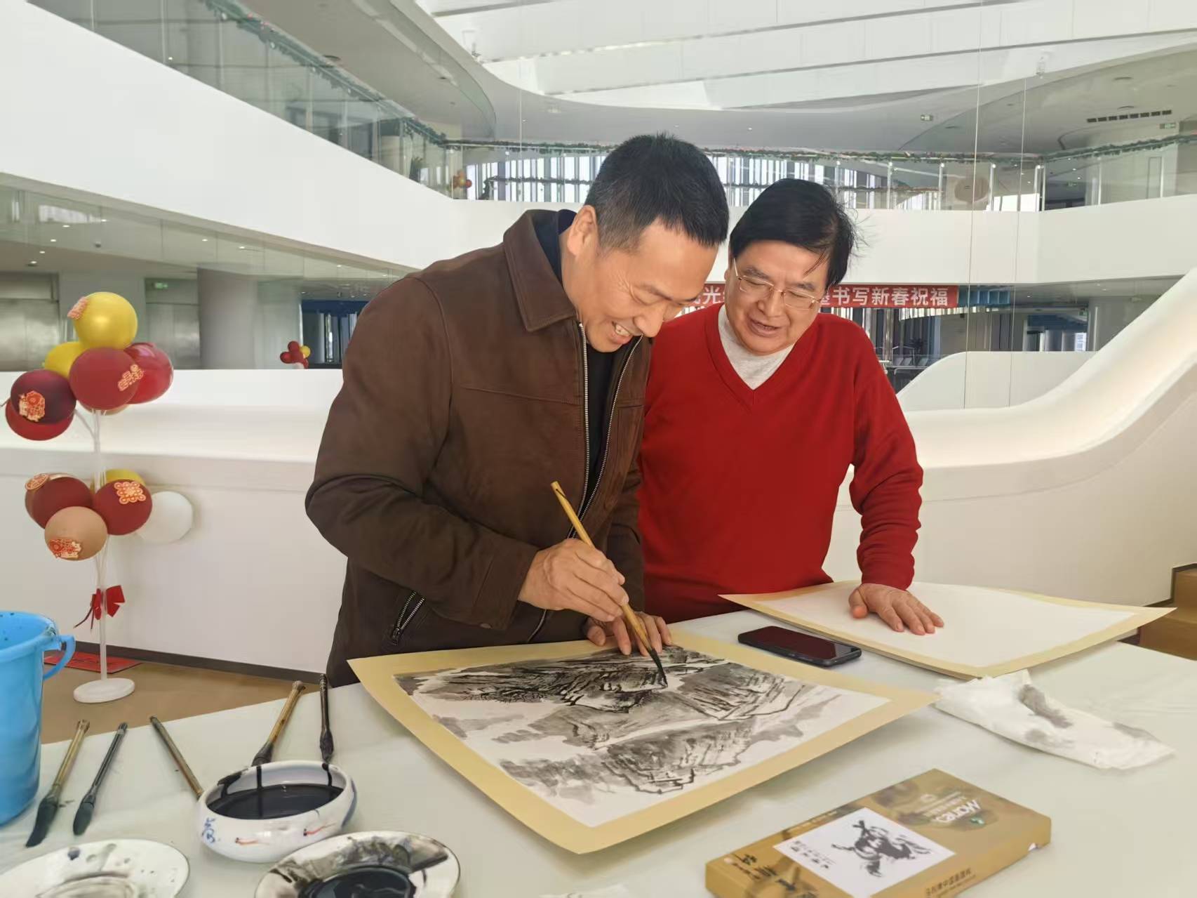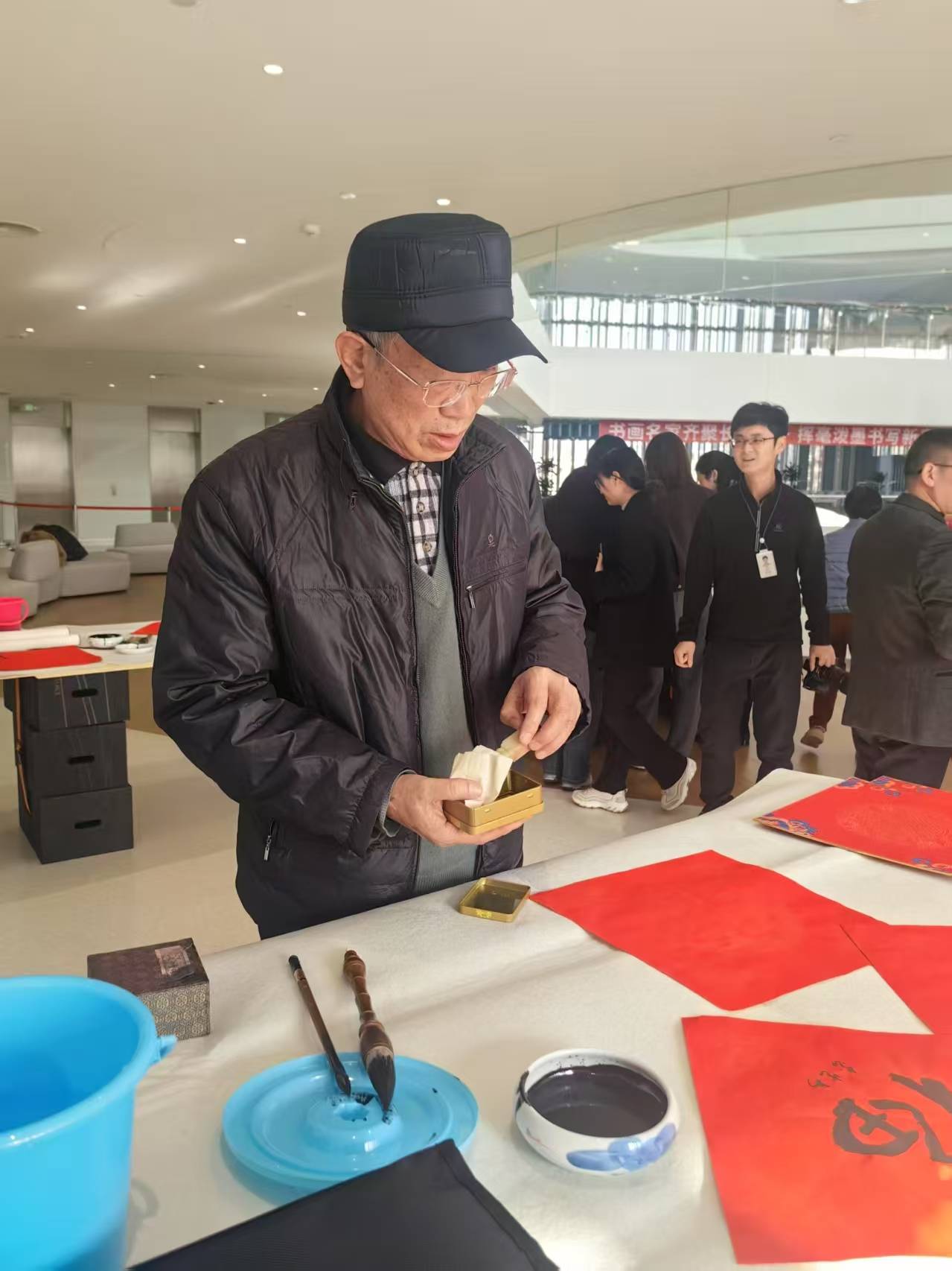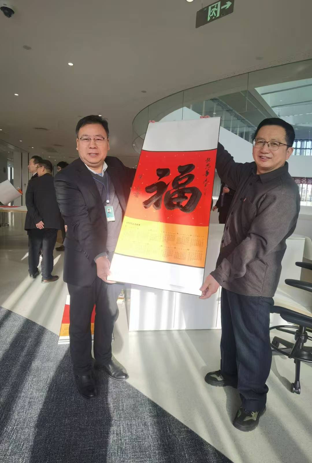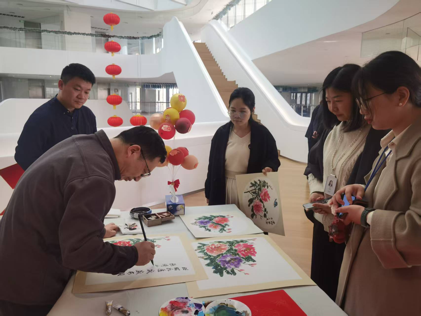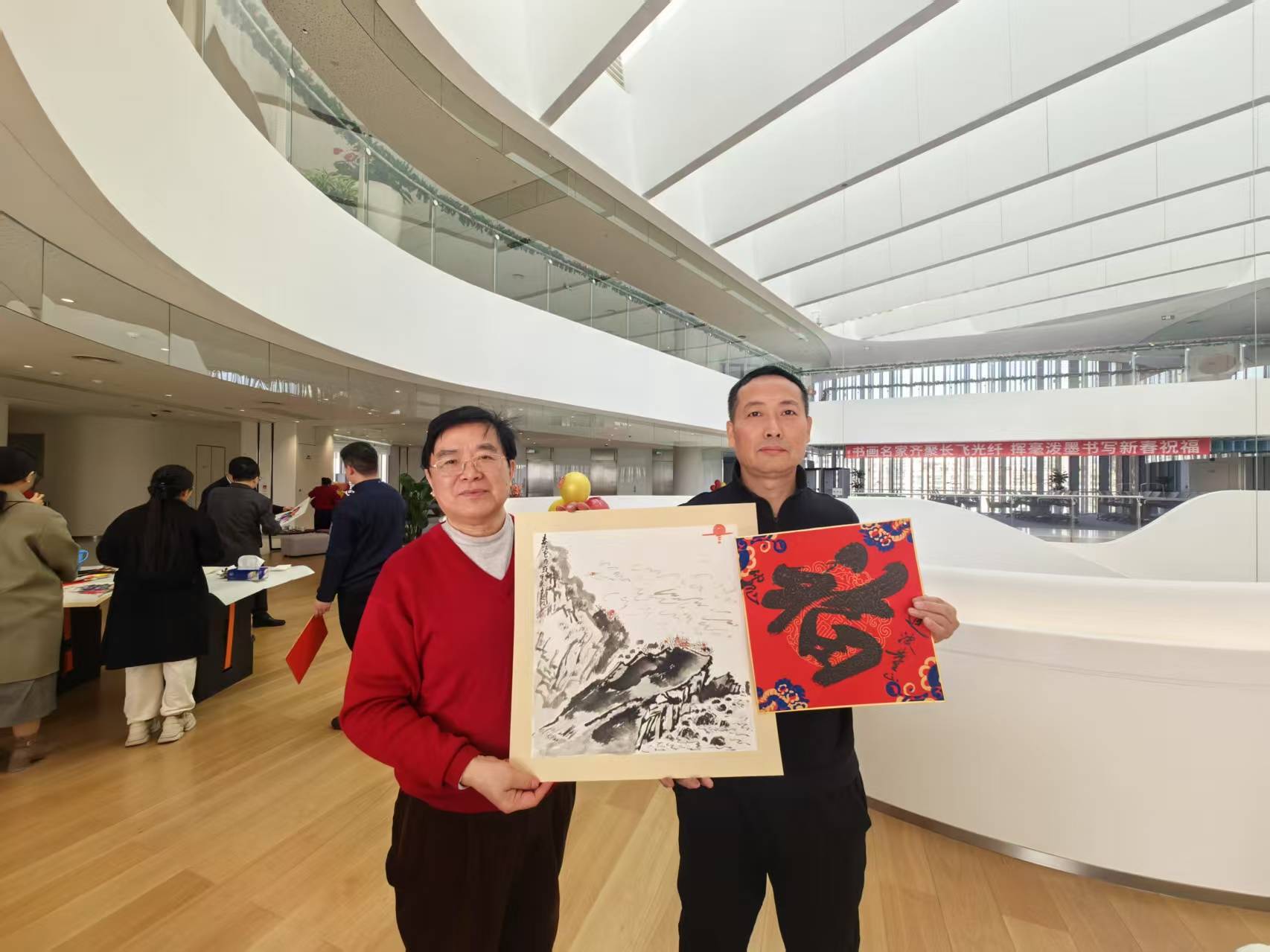 公司在家的领导副总裁郑昕、蒋涢,党委常务副书记,工会主席张光华等同员工一道热情地参与了此次活动。在活动现场,赵斌挥毫泼墨,书写毛主席诗词《沁园春·雪》,苍劲有力的笔触激励着长飞光纤在新的一年砥砺奋进、走在前列。叶金生笔走龙蛇,一个个“福”字、一幅幅春联跃然纸上。林幼槐以榜书见长,那饱满雄浑的字体,仿佛蕴含着满满的福气。陈艾书画兼容,其作品引来众人围观,啧啧称赞。徐进波的山水画作更是满纸云烟,将自然之美浓缩于宣纸之上。李海峰的启功体书法别具风采,清新脱俗。 书画家们创作热情高涨,写“福”字的场景最为壮观,寓意深刻,祝福祖国国泰民安,祝福企业欣欣向荣,祝福家庭幸福安康。而画得最多的当属牡丹,其富贵吉祥、国色天香之态,为即将到来的新春增添了一抹绚丽的色彩。现场的员工们也纷纷道出自己的新年祝愿,“平安喜乐”“和气致祥”“万事顺意”“心想事成”等美好期许此起彼伏。