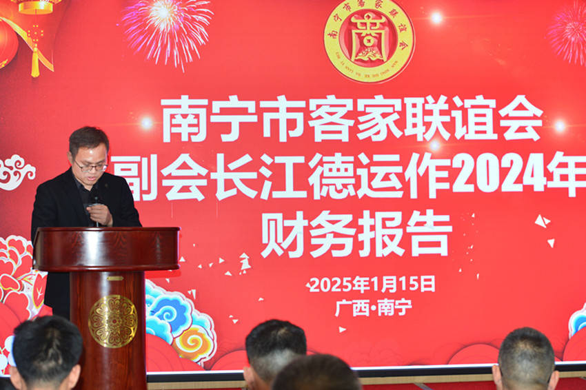 团拜会现场充满了喜庆祥和的节日氛围。南宁市客家联谊会会长钟团明先生发表了热情洋溢的致辞,向广大客家同胞致以新春的问候和美好的祝福。他表示,过去的一年里,南宁市客家联谊会在团结客家乡亲、传承客家文化、促进经济发展等方面发挥了积极作用,取得了显著成绩。新的一年,联谊会将继续秉持“联络乡情、增进友谊、团结互助、共同发展”的宗旨,为推动首府南宁的经济社会发展贡献客家力量。在交流互动环节,与会嘉宾们踊跃发言,分享了自己的创业经验和发展成果,对南宁市以及大广西的投资环境和发展机遇进行了深入探讨。大家一致对客家人勤劳、团结、好客、敢闯敢拼的精神所感动,并对长期以来客家企业在广西乃至国内外各个领域的出色表现,对地方经济社会发展所做出的重要贡献给予高度赞许。大家表示,南宁市作为广西壮族自治区的首府,具有得天独厚的区位优势和发展潜力,客家同胞们应抓住机遇,携手合作,共同开创更加美好的未来。