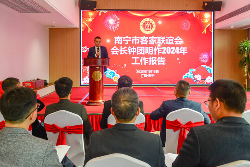岁序更替,华章日新。在 2025 年新春佳节即将来临之际,“客家筑梦首府,携手共赢未来”南宁市客家联谊迎春团拜会在南宁隆重举行。来自各行各业的客家精英、乡贤代表,以及各友好商协会代表齐聚一堂,共话桑梓情谊,同谋发展大计。广西客家海外联谊会会长肖志钢先生、南宁市工商联副主席李照刚先生等相关领导出席了会议并致新春贺词。
