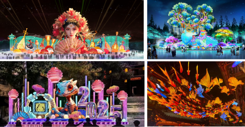 九大主题非遗灯·全民共乐迎新春 在创新呈现方面,“民族之夜”独具匠心。它将传统非遗彩灯与现代投影科技完美结合,打造出一系列彩灯光影艺术新品。民族女神、孔雀之翎、花好月圆、一袋一鹿、北京之夜、生命之树、赛博生肖、鱼龙长廊、福绕蛇年等九大主题复合灯组,与大理再现、云冈传说、大闹天空等激光投影秀和LED巨幅天幕相互辉映,为游客带来一场震撼的视觉盛宴。 此外,民族之夜2025首届“潮”文化节,以“灯会庙会游福园·民族之夜过大年”为主题,汇聚了民族特色美食、文创产品、非遗彩灯展示、世界各民族音乐演出、新春庙会、五路财神及机甲悟空NPC互动等多种元素,全方位满足不同游客的出行需求。