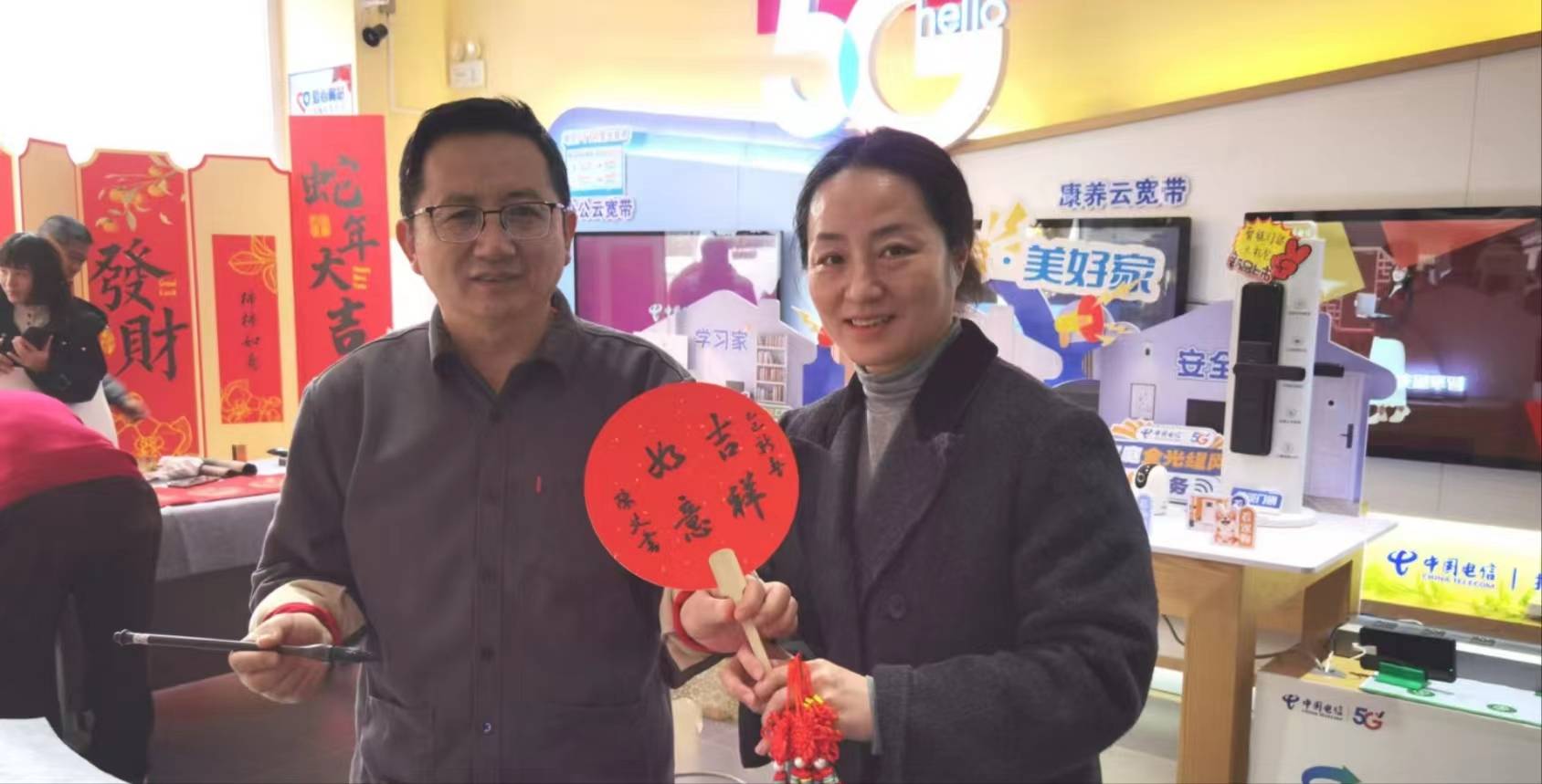 员工们亦心满意足地拿着扇面和画作,言辞恳切地表达着内心的感动。“这些作品不仅是艺术的馈赠,更是精神的鼓舞,激励着我们在新的一年克难奋进,夺取开门红!”那一张张真挚的脸庞,在书画的映衬下,显得格外生动。 写春联送祝福活动,为新的一年电信用户提供个性化、有温度的服务添上了一抹绚丽的色彩,让用户们深切感受到电信的人文关怀。同时,也为员工们在新的一年里卯足了干劲,激励他们勇往直前,为实现工作目标而不懈努力。