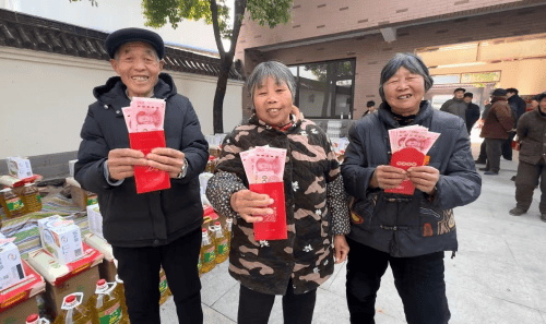 还特别针对本自然村28位 70 岁、80岁以上老人送上700元、800元的关爱金。