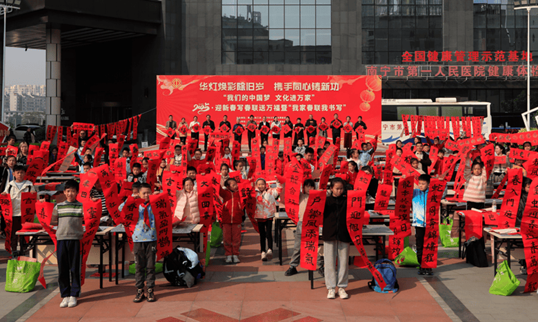 新春将至,瑞气盈门,由南宁市总工会、南宁市文学艺术界联合会主办的2025·迎新春写春联送万福暨‘我家春联我书写’”活动于2025年1月19日在南宁文化宫隆重举行。南宁市的书法家们与少年儿童“书法成长课堂”的学生们同台挥毫,共同书写春联和“福”字,为广大市民职工和少年儿童送上新春的祝福。