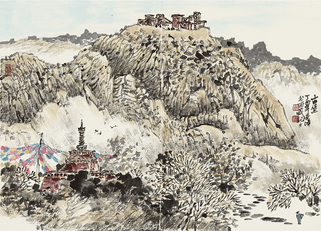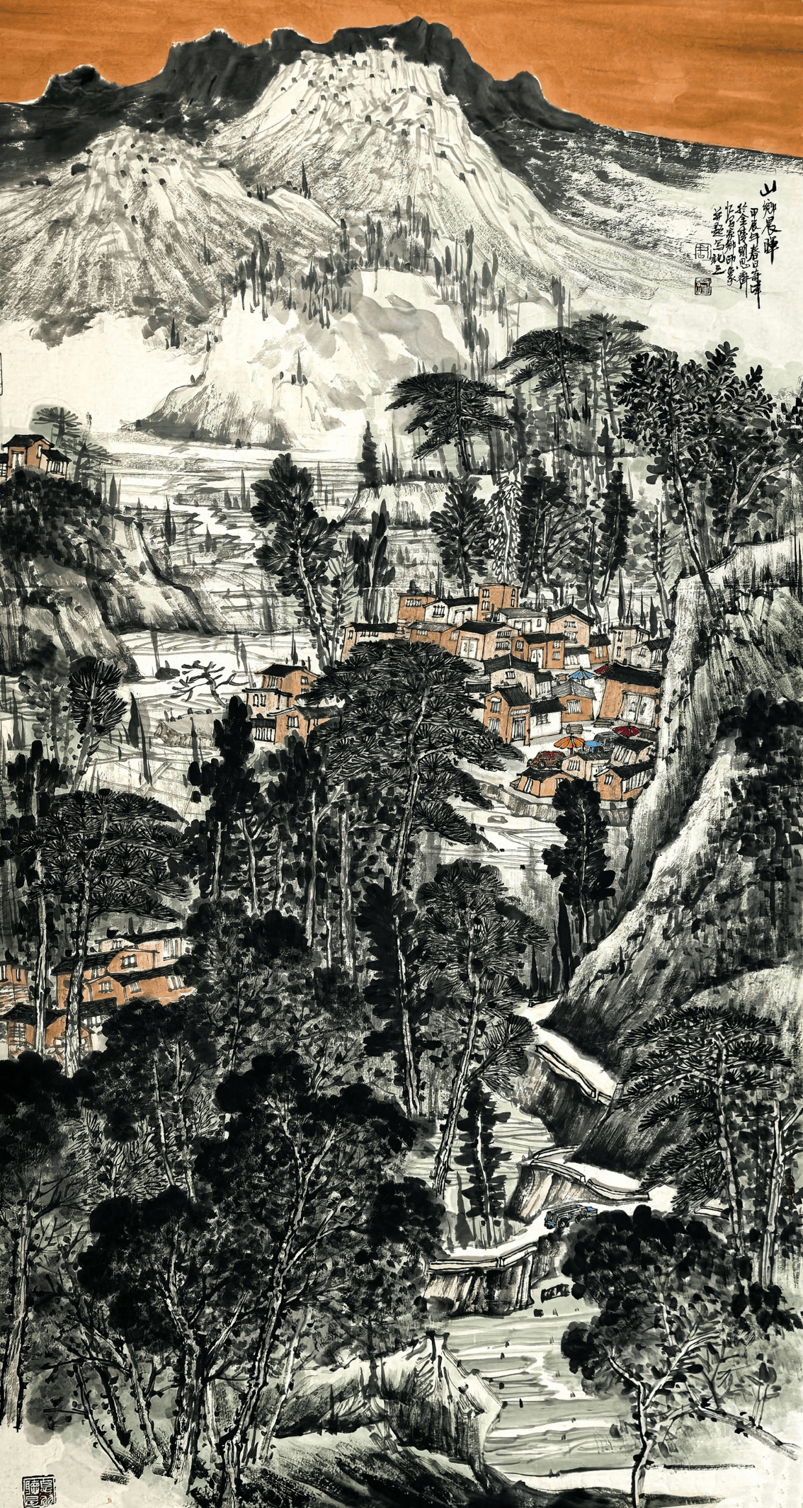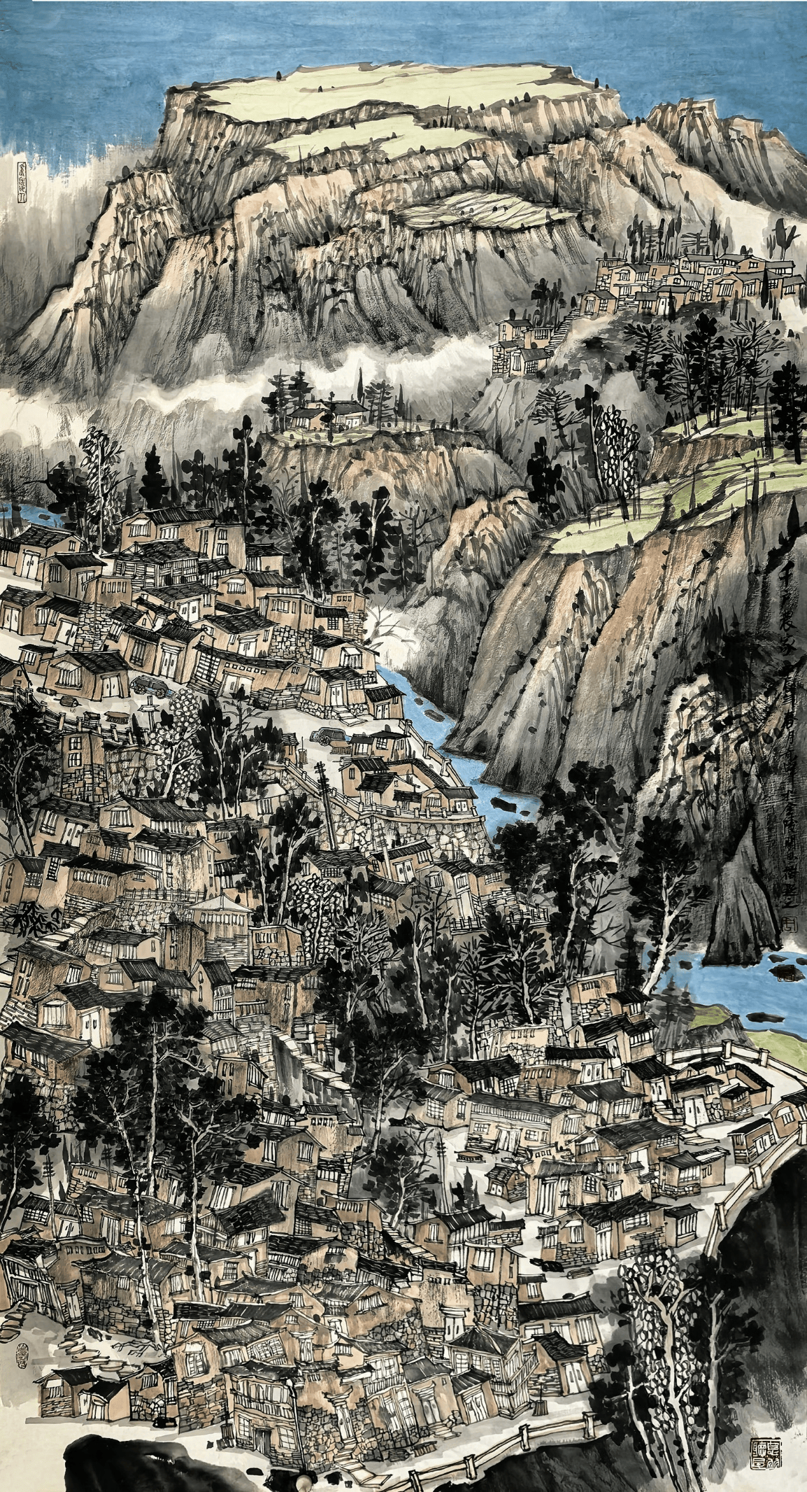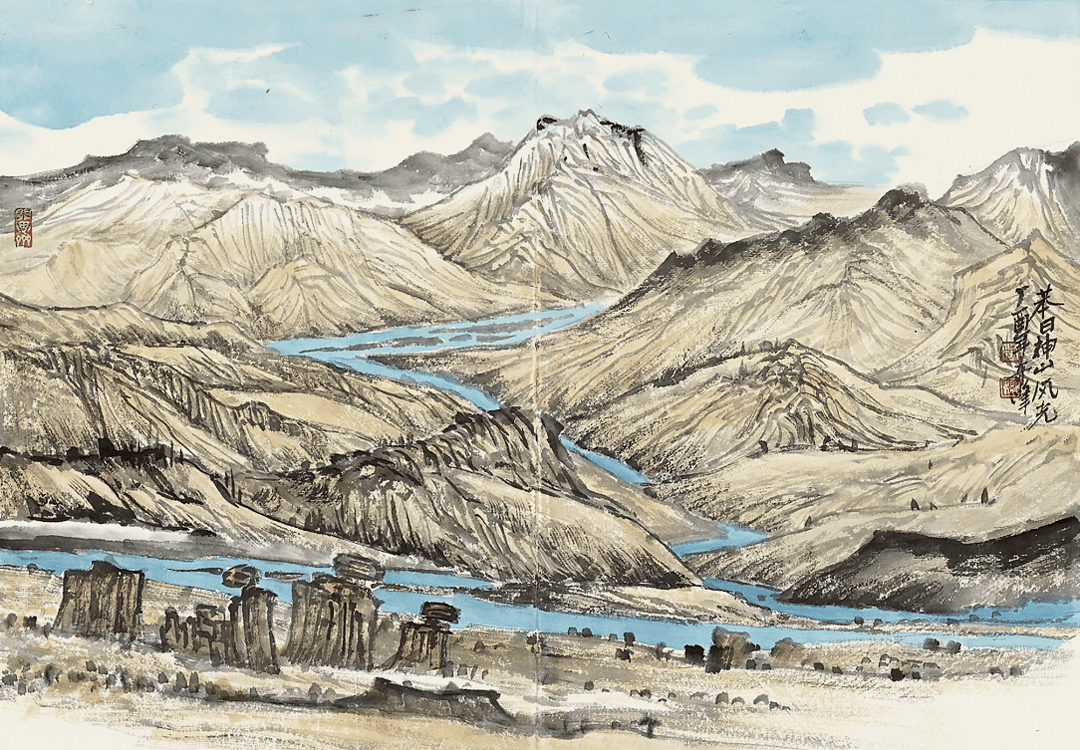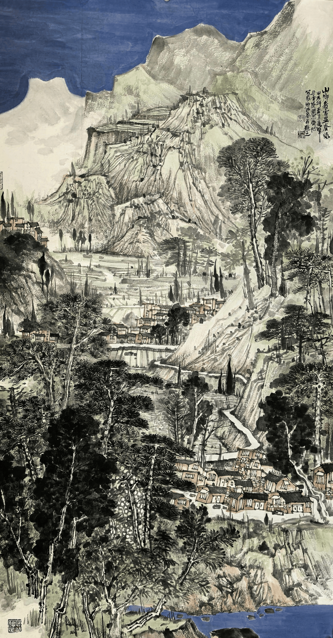 艺融南北 雄中有秀 ——析周奇峰的山水画境 由于画家所处的自然环境、艺术理念、师承关系和审美取向的不同,从目中山水到笔下山水必生各异。 山水画自五代北宋始分南北方两大风格流派,在北方以荆浩、关仝和范宽为代表,画中山水峻拔、劲挺、深厚,笔意枯老具有雄润伟美的气格;而江南山水则以董源为宗,画中峰峦重叠、云雾明晦、湖泊遍布,笔意润泽华滋,具有清逸秀润之美,后继者各师其宗径渭分明。如今交通便利发达已无东西南北之闭,画家亦见多识广,目及天下山水搜于胸中,依着自己的个性和审美喜好自创山水画。南京周奇峰是位艺融南北的金陵山水画又一家。