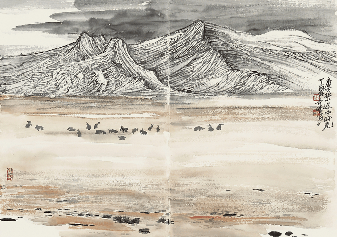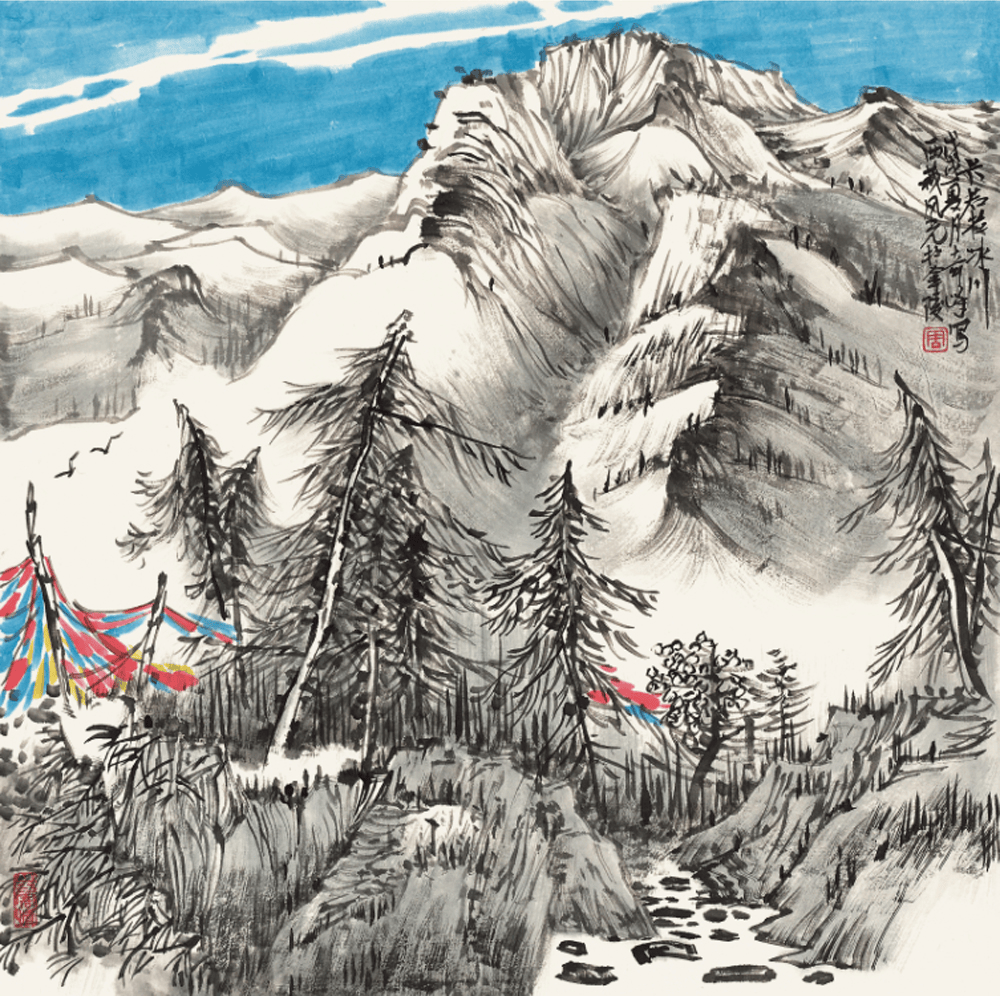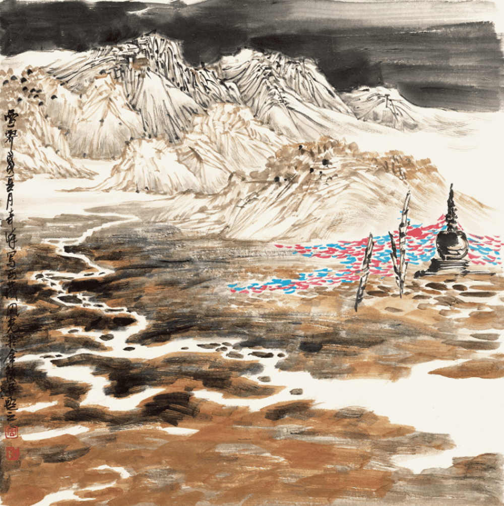 奇峰的山水画造境多采取南北方山水体貌,不受地域真山水之制约,这表明他已经超越目中山水并升华为胸中山水的创作,这是一个艺术创作的飞跃。如清人石涛所言“搜尽奇峰打草稿”,这是山水画家的一个高境界。如果画家不仅描绘自然山水的外在物质性体貌,更深入的感悟自然之内在的生命气质,以自己的理想和思想感情投入其中,以“山性即我性、水情即我情”,