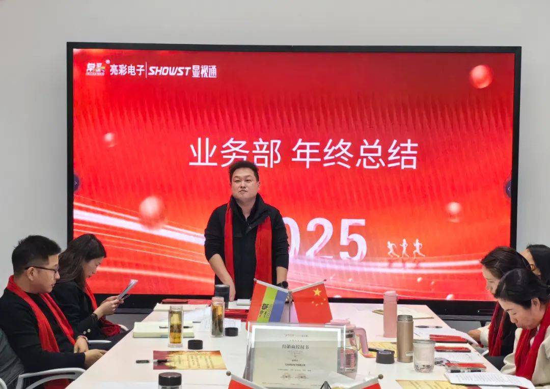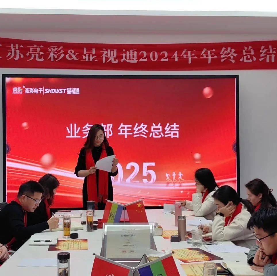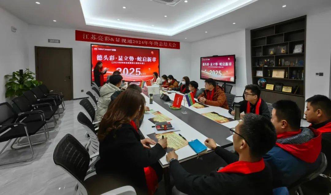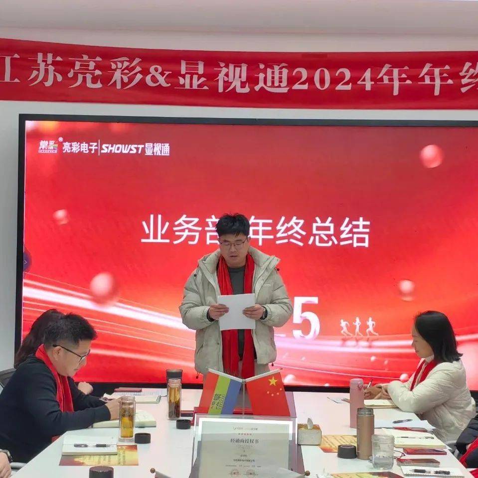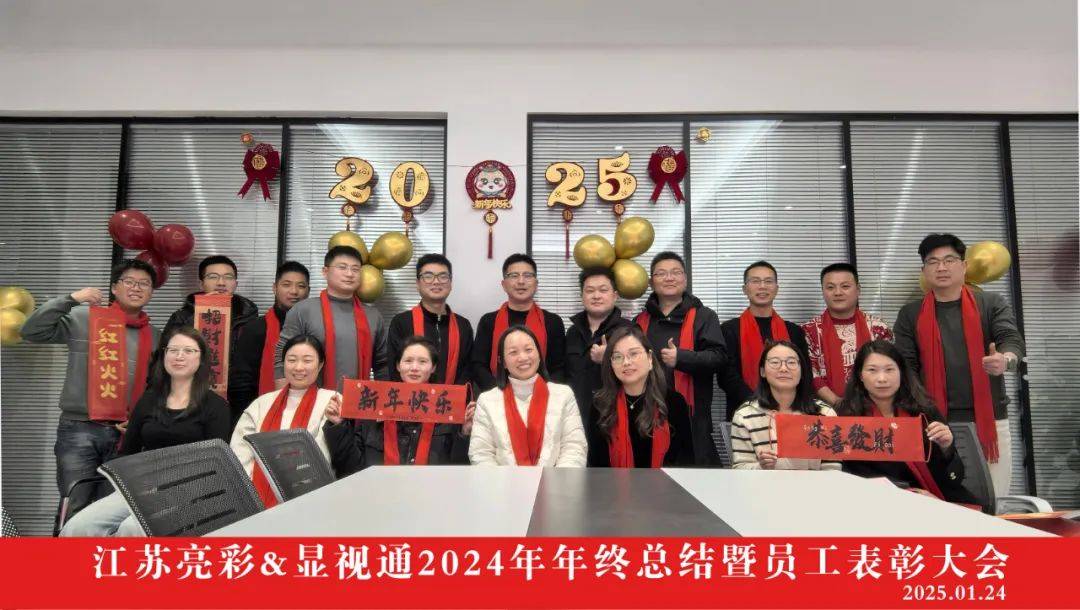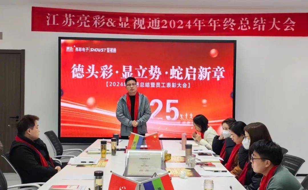 蛇来运转,鸿运新年 岁序更替,华章日新。为总结经验、表扬优秀员工,进一步激励全体江苏亮彩人担当作为,奋勇争先,1月24日,我们召开2024年度年终总结暨表彰大会。 章总向全体员工汇报了2024年公司整体经营情况,对2024年的成绩表示了肯定。针对目前严峻复杂的经济环境、行业形势,围绕2025年全年工作、重点领域、关键目标做了深度规划。 他指出,在新办公环境下,2025年要继续聚焦销售所制定的各项目标,全力以赴抓业绩、强服务、优管理,降成本,增效益,以无畏的勇气、笃定的实干,向着全新的目标奋勇冲刺!