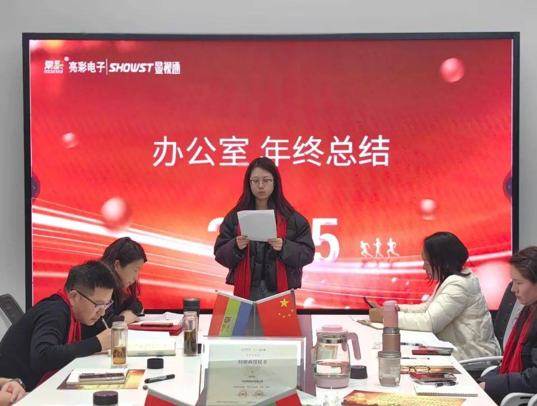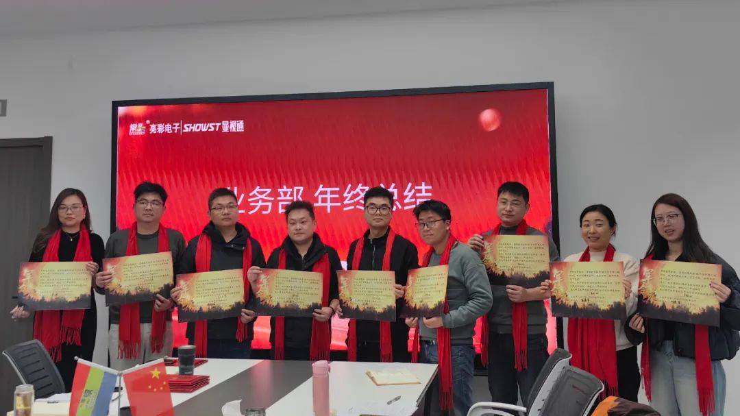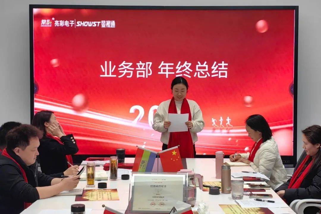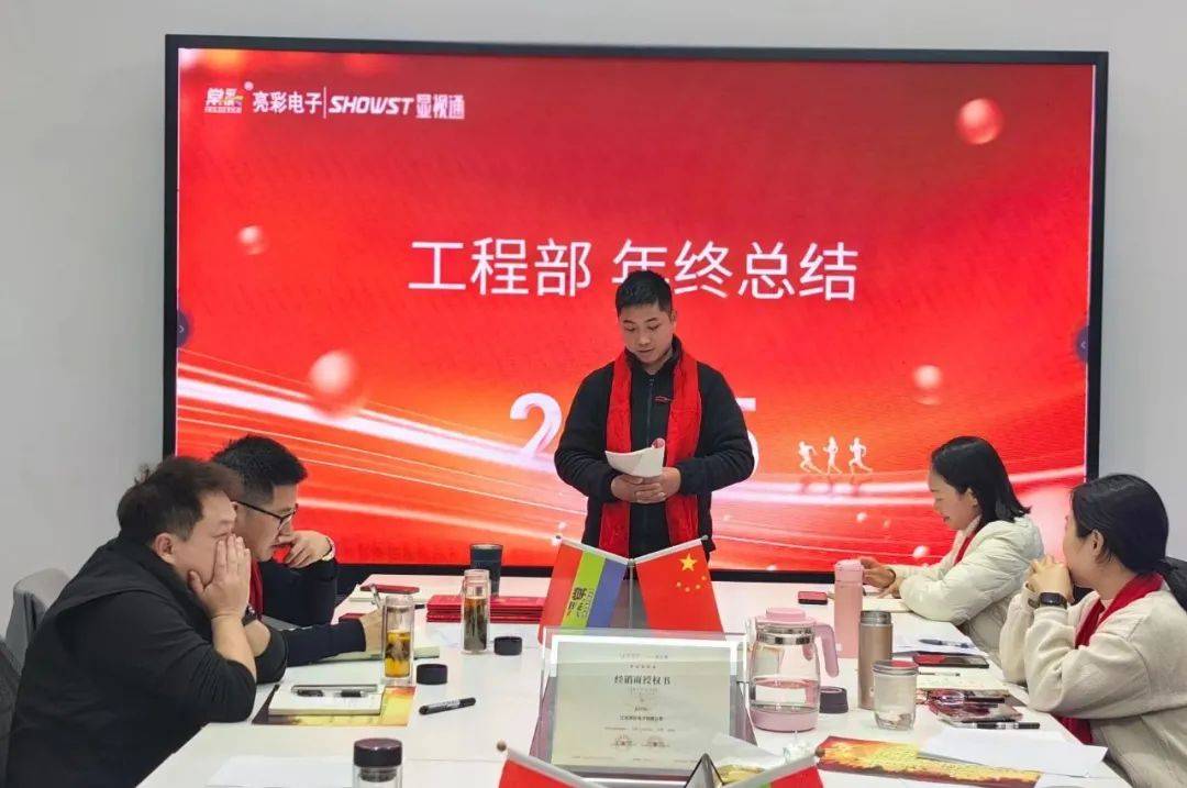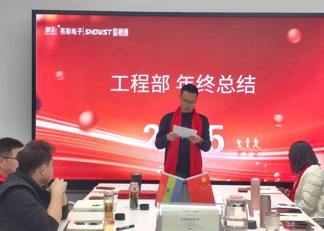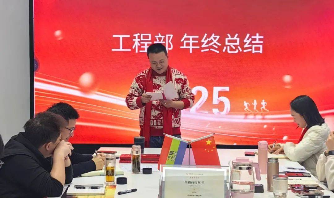 蛇来运转,鸿运新年 岁序更替,华章日新。为总结经验、表扬优秀员工,进一步激励全体江苏亮彩人担当作为,奋勇争先,1月24日,我们召开2024年度年终总结暨表彰大会。 章总向全体员工汇报了2024年公司整体经营情况,对2024年的成绩表示了肯定。针对目前严峻复杂的经济环境、行业形势,围绕2025年全年工作、重点领域、关键目标做了深度规划。 他指出,在新办公环境下,2025年要继续聚焦销售所制定的各项目标,全力以赴抓业绩、强服务、优管理,降成本,增效益,以无畏的勇气、笃定的实干,向着全新的目标奋勇冲刺!