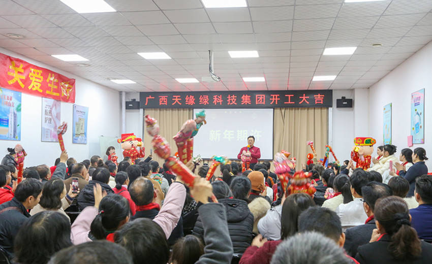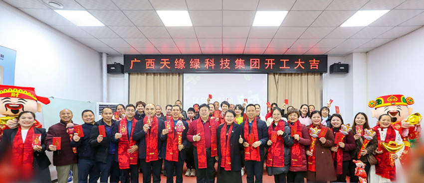 随着农历新年的钟声渐行渐远,春天的气息悄然弥漫。2025年2月6日,大年初九,广西天缘绿科技集团在天绿元素生活体验中心举办了一场别开生面的“金蛇聚势”开工活动。