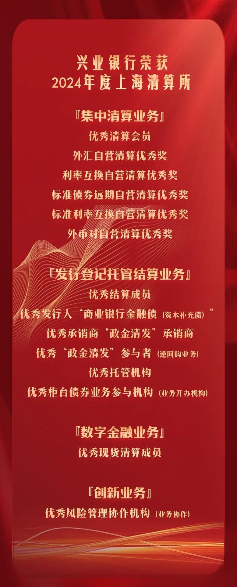 近日,上海清算所发布《2024年度集中清算业务和发行登记托管结算业务高质量发展评价结果》,兴业银行凭借在多个领域的卓越表现,荣膺“优秀清算会员”“优秀结算成员”“利率互换自营清算优秀奖”“优秀托管机构”等14个奖项,是兴业银行近年来取得的最佳成绩。 “奖项涵盖集中清算业务、发行登记托管结算业务及创新业务等多个领域,充分展示了我行在各个业务板块中的专业能力和市场领先地位,以及在银行间市场的强劲实力和持续创新能力。”兴业银行同业金融部相关负责人表示。 上海清算所系中国人民银行主管的国家重要金融基础设施,兴业银行是其首批产品类综合清算会员。2024年,兴业银行与上海清算所签署全面战略合作协议,双方发挥各自优势,在集中清算及发行登记托管业务、风险管理、国际业务、绿色金融、信息技术等领域深化合作,携手完善金融市场体系,做好“五篇大文章”,服务上海国际金融中心建设和金融高质量发展,为推进中国式现代化贡献金融力量。 近年来,兴业银行积极参与上海清算所双支柱业务发展,在风险管理、“互换通”、柜台债券、标准利率互换、政金债等多个创新业务方面取得显著进展。数据显示,2024年兴业银行参与集中清算业务累计规模超23万亿元(含代理),其中利率互换集中清算业务表现卓越,规模达10.61万亿元(含代理),已连续多年保持全市场第一。 ![]() |