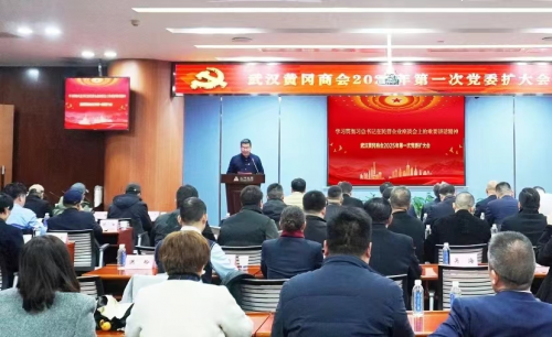 ——武汉黄冈商会2025年第一次党委扩大会在武汉召开 2025年2月22日,武汉黄冈商会2025年第一次党委扩大会在武汉召开。武汉黄冈商会党委委员、支部党员、会员代表以及黄冈各县市区商会会长、书记、党员代表共计80余人齐聚一堂,围绕民营经济发展等议题展开深入交流与探讨。武汉市工商联原副主席、武汉黄冈商会党建指导员熊曦,湖北省统计局原副局长、中南财经政法大学教授、博导、武汉黄冈商会顾问叶青,武警湖北总队政治部原副主任、武汉黄冈商会党建顾问张翔大校,武汉大学教授、博导、武汉黄冈商会副监事长郑春美,湖北广播电视台《楚商》执行主编胡泊等应邀出席会议。会议由武汉黄冈商会党委委员、执行会长肖怀林主持。
